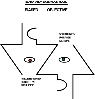 페티와 카시오포는 심리학적 태도와 설득에 대한 연구자들이, 수용자 측의 태도 변화에 있어 주변 상황에 따른 영향의 크기와 관련된 문제에 직면하고 있음을 인식했다.[118] 이들은 이러한 문제를 해결하고, 설득에 의한 태도 변화의 지속성 차이를 설명하기 위해 정교화 가능성 모델을 제창했다.