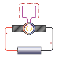 정류자는 회전축에 고정되어 전기자 권선에 연결되는 접촉 막대 세트로 구성된다. 축이 회전하면 정류자는 전류 흐름을 반전시킨다. 발전기에서 축에 가해지는 기계적 토크는 고정 자계를 통해 전기자 권선의 움직임을 유지하여 권선에 전류를 유도한다. 모터와 발전기 모두에서 정류자는 권선을 통해 흐르는 전류의 방향을 주기적으로 반전시켜 기계 외부 회로의 전류 흐름이 한 방향으로만 유지되도록 한다.
