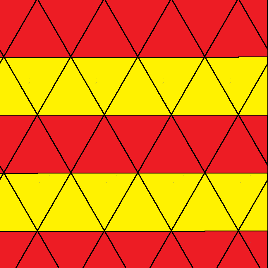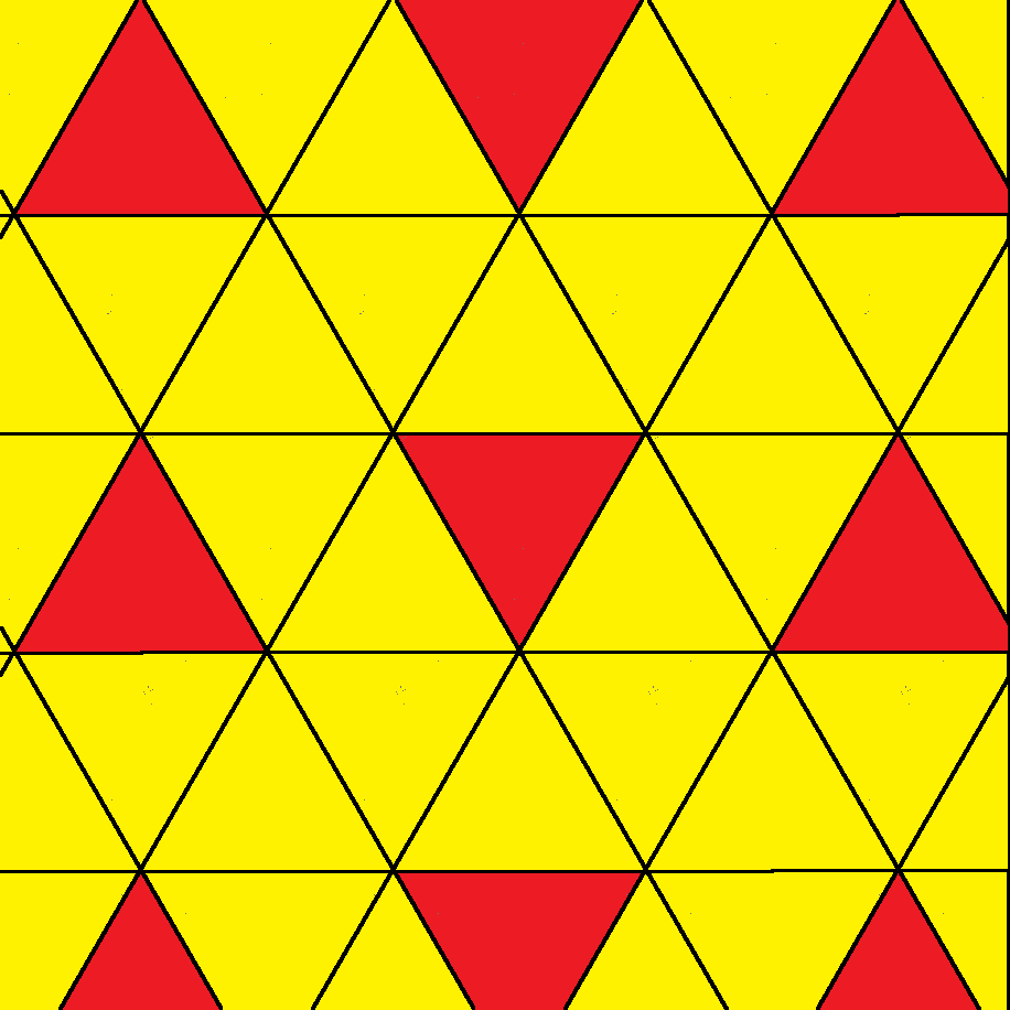111112(* 표시)는 아르키메데스 색칠이다. 아르키메데스 색칠은 1-균일이 아니며, 다른 모든 세 번째 정삼각형이 칠해진 정삼각형 열이 있다. 표시된 예는 2-균일이지만 열을 이동시킨 아르키메데스 색칠은 무한히 많다.