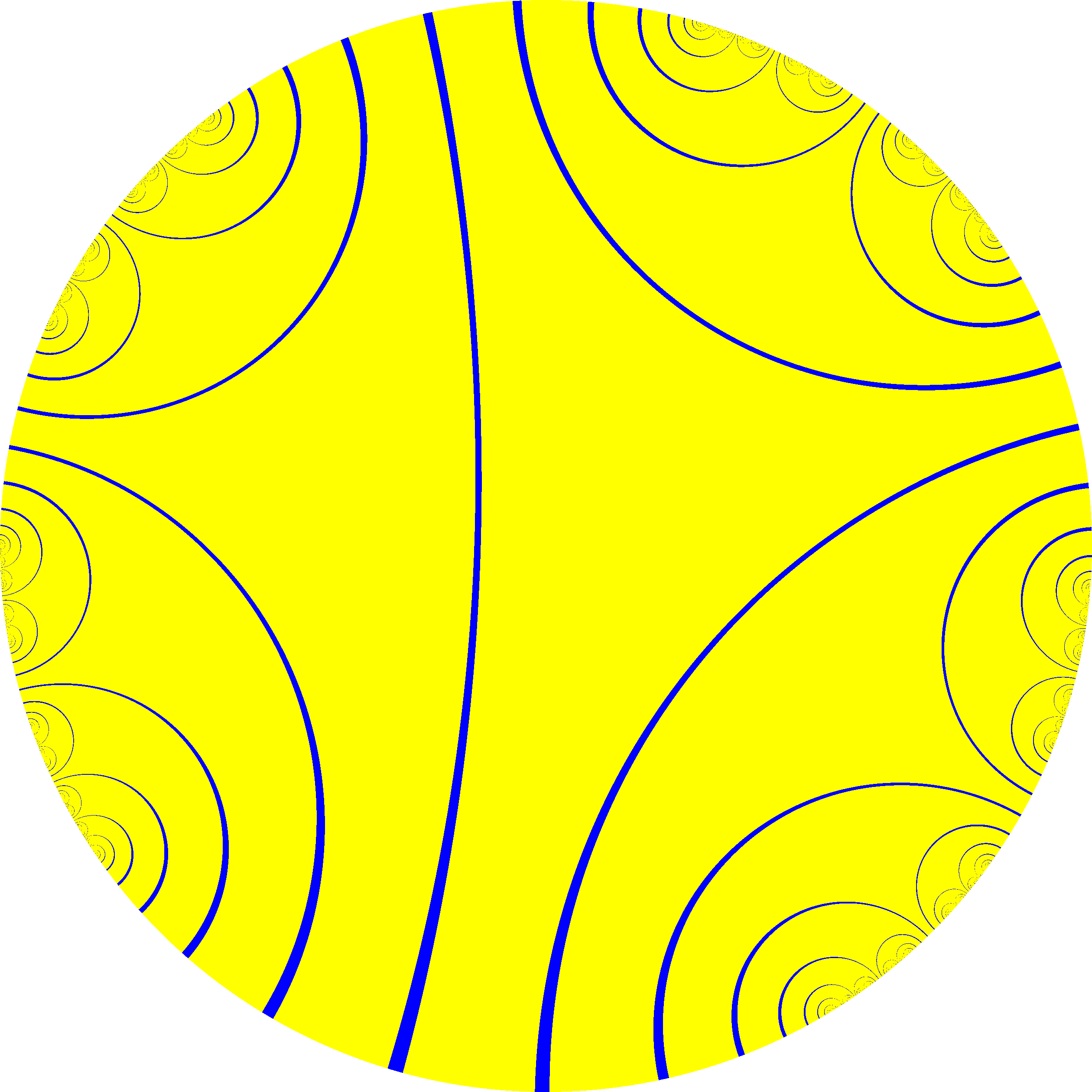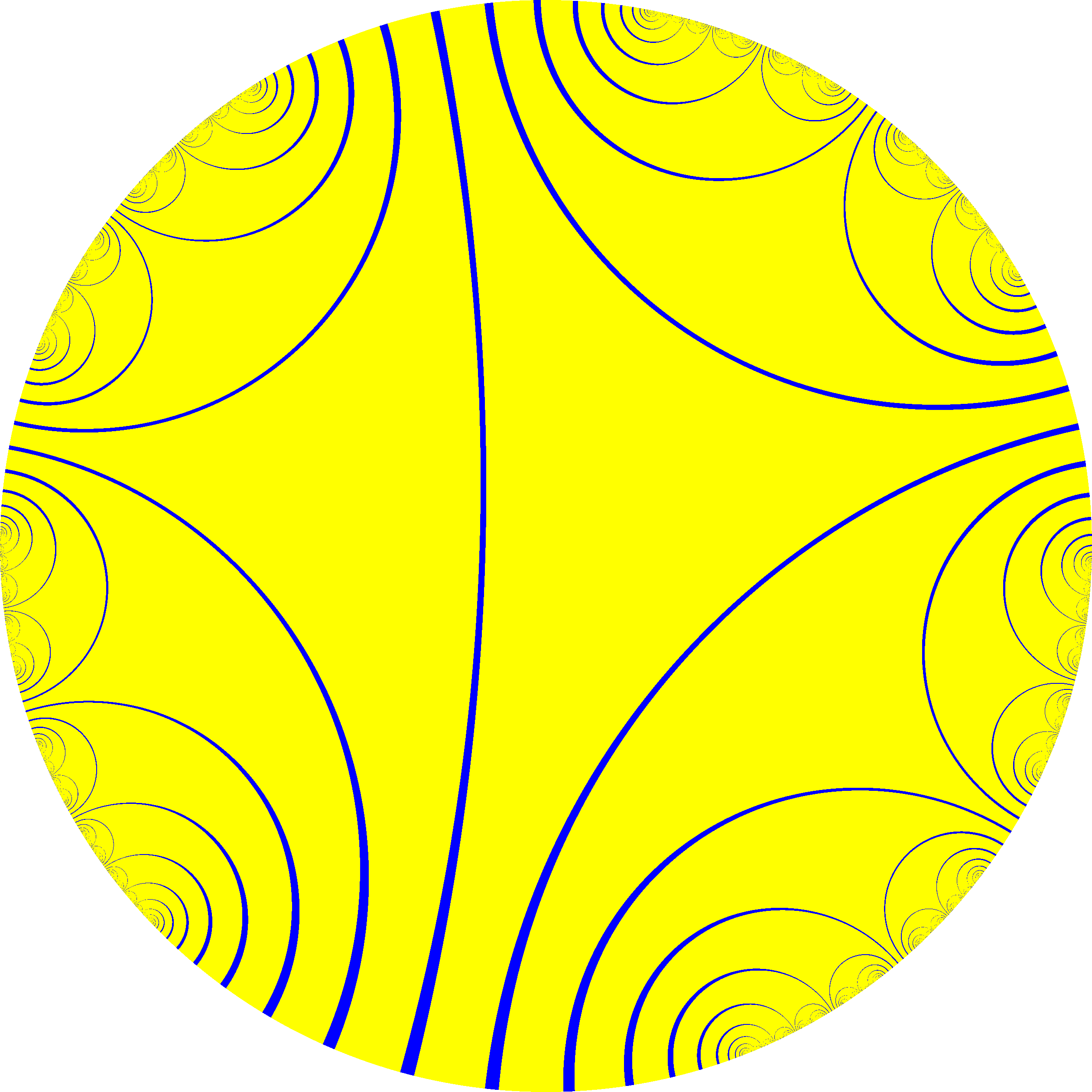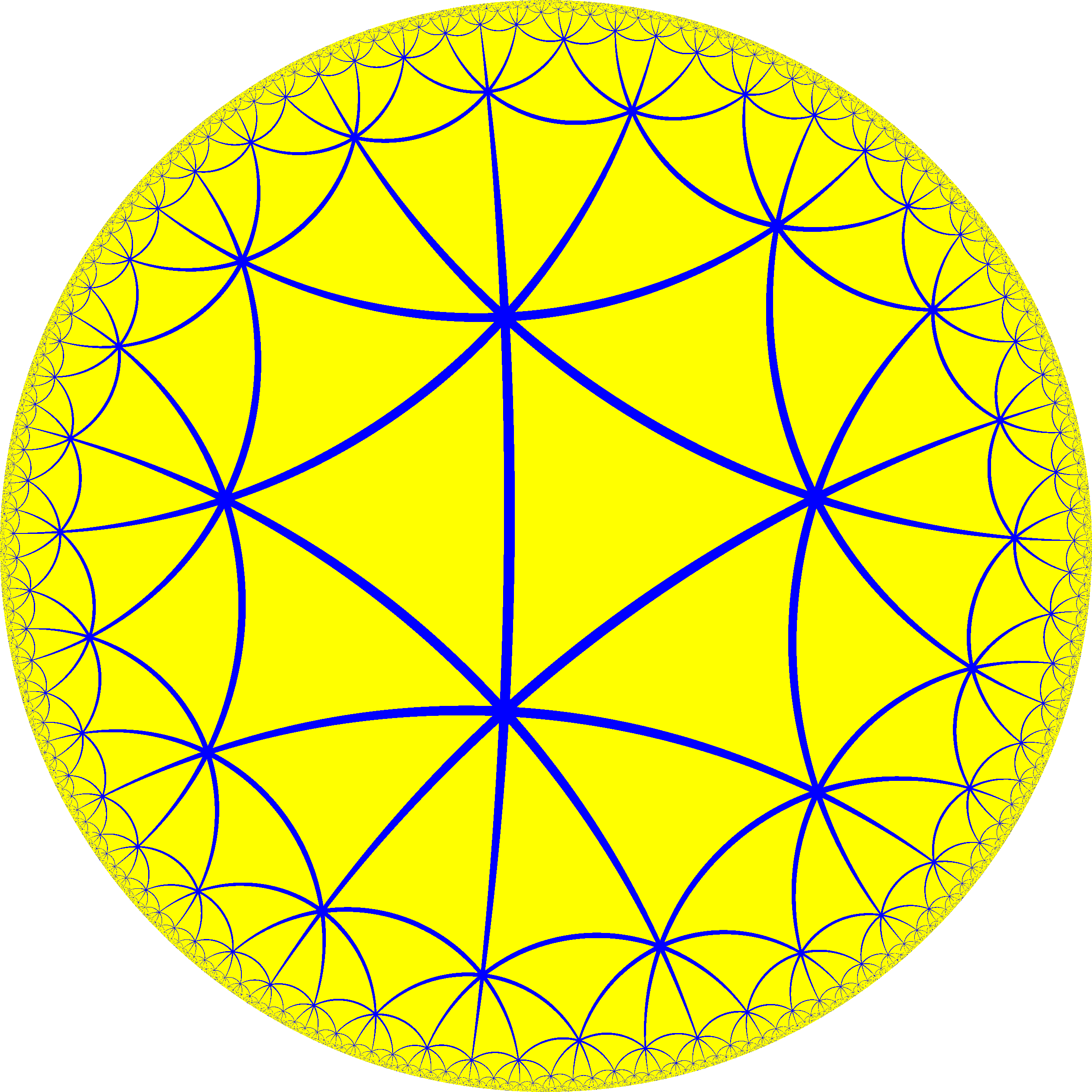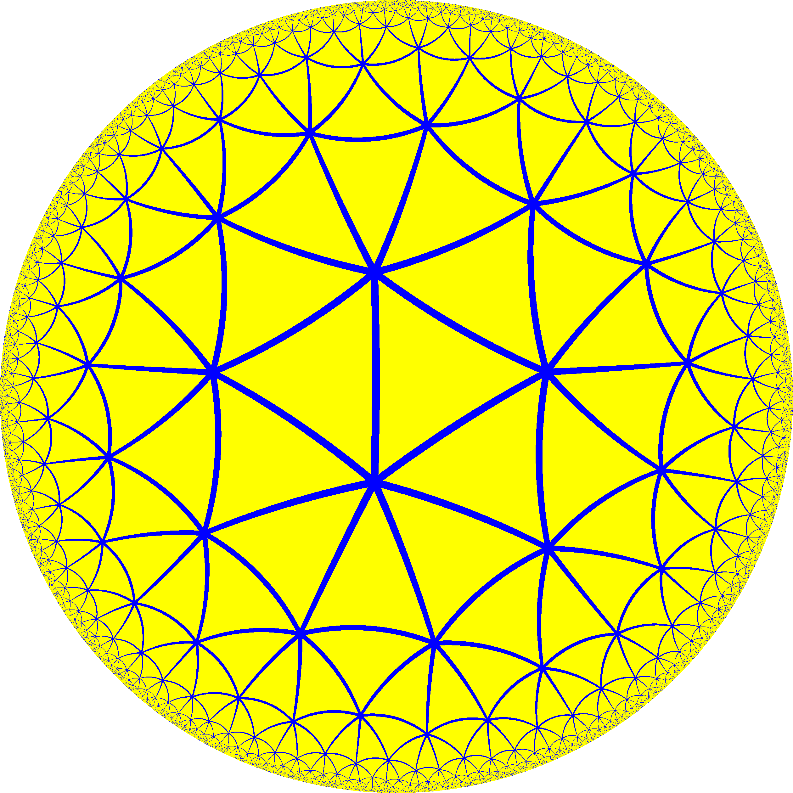정삼각형 테셀레이션의 꼭짓점을 공유하는 복합 정 무한각형에는 네 가지가 있다. 복합 정 무한각형은 꼭짓점과 모서리를 가지며, 모서리는 둘 이상의 꼭짓점을 포함한다. 정 무한각형 ''p''{''q''}''r''는 1/''p'' + 2/''q'' + 1/''r'' = 1로 구성된다. 모서리는 꼭짓점이 ''p''개가 있으며, 꼭짓점 도형은 ''r''각형이다.[10]