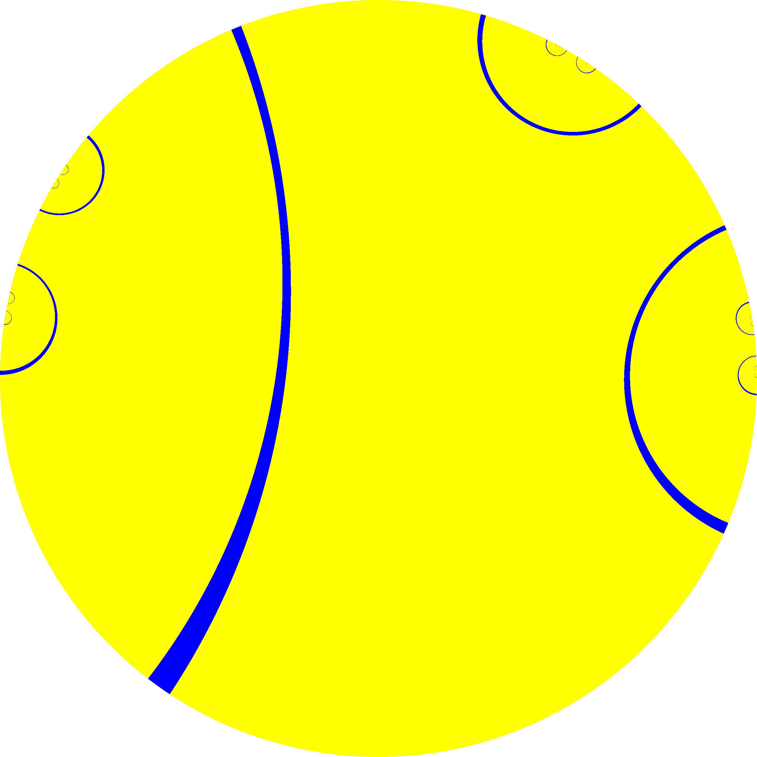 정삼각형 격자의 꼭짓점은 가장 조밀한 원 채우기의 중심들이다.[8] 모든 원은 채우기에 있는 다른 원 6개와 접촉한다(입맞춤 수). 채우기 밀도는 π/√12 또는 90.69%이다. A 격자 세 개의 결합은 여전히 A 격자이기 때문에, 원 채우기는 3색의 원으로 주어질 수 있다.