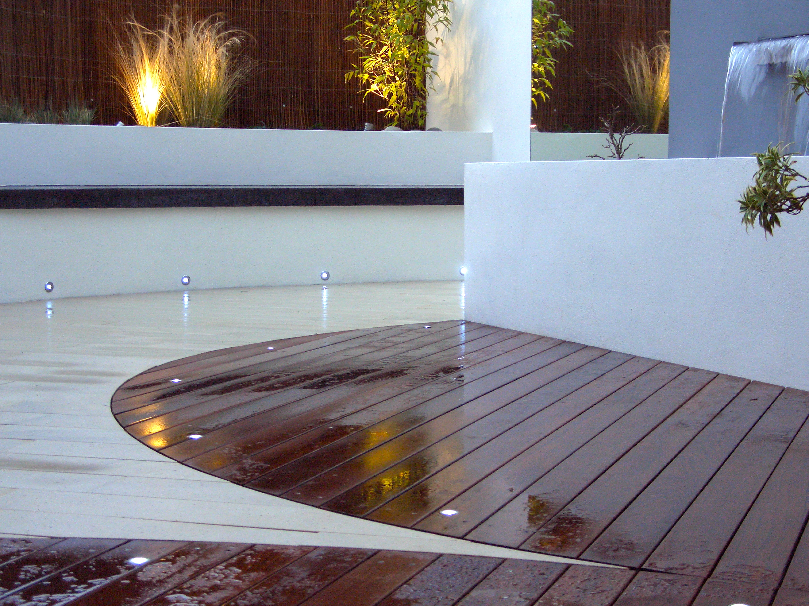 정원 조명은 현대 정원 디자인에서 필수적인 역할을 한다. 포장과 벽에 통합된 신중하게 배치된 저전압 LED 조명을 사용하여 미묘한 조명 효과를 얻을 수 있다.[18]