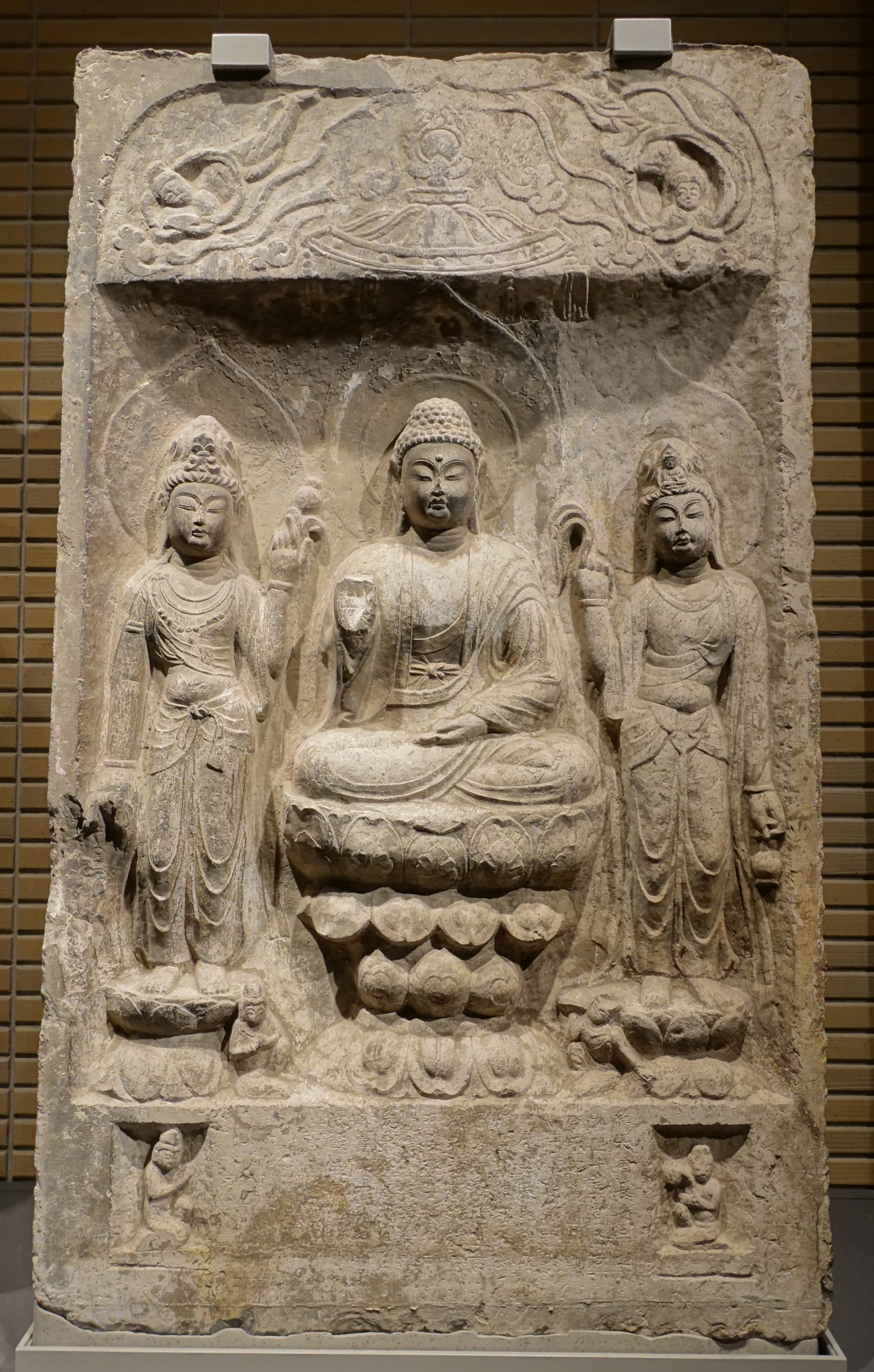 담란은 보리유지(菩提流支: 5세기말~6세기초)가 번역한 《정토론》을 주석하여 《정토론주(淨土論註)》를 저술하고, 범부(凡夫)의 왕생은 타력(他力)에 의해야 한다고 주장하며 정토교 교리의 기초를 확립했다.[269][271] 《관무량수경(觀無量壽經)》에 나오는 염불관(念佛觀)은 담란에 의해 칭명염불(稱名念佛)로 발전되었다.[269] 그의 사상은 수나라(隋)와 당나라 초기에 활동한 도작(道綽: 562~645)에게 계승되었고, 도작은 《안락집(安樂集)》을 저술하여 정토교의 근본 성전으로 삼았다.[269] 도작은 불교를 성도(聖道)와 정토(淨土)로 나누고, 말법5탁(末法五濁)의 세상에서는 아미타불에 귀의하여 정토왕생을 기원하는 정토교만이 유일한 길이라고 주장했다.[271]