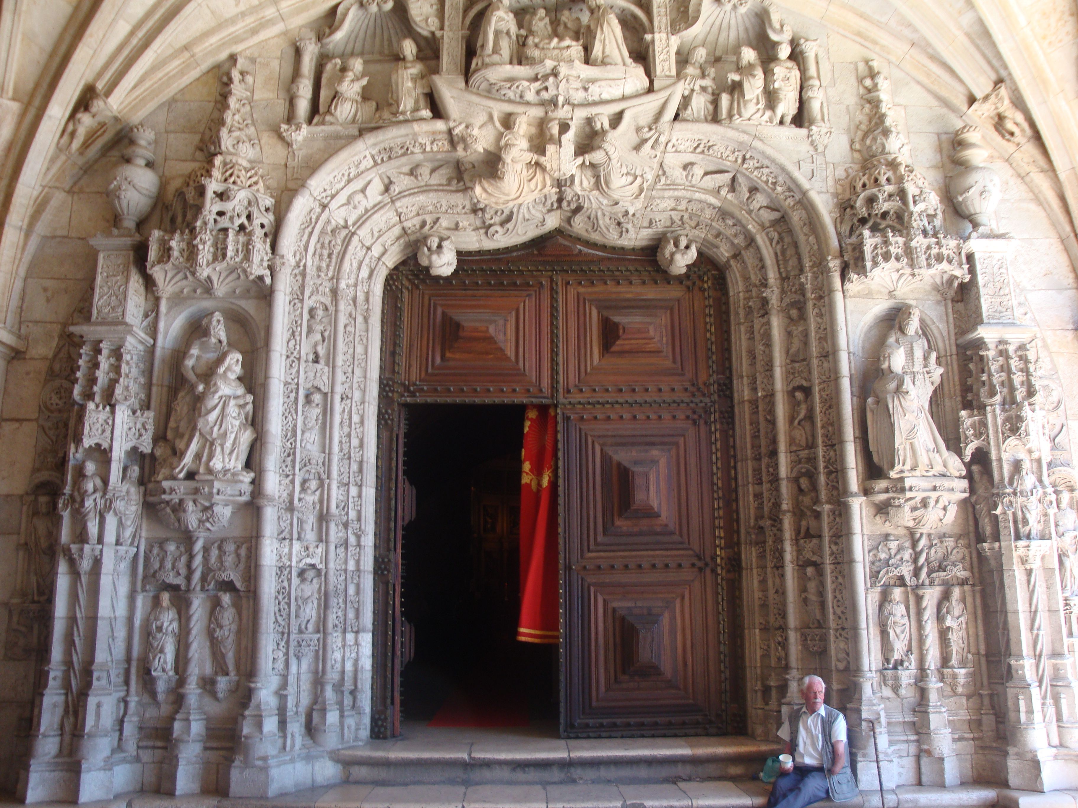 고막은 이중 문 위에 있으며, 반부조로 성 제롬의 생애의 두 장면을 묘사한다. 왼쪽에는 사자의 발에서 가시를 제거하는 장면이, 오른쪽에는 사막에서 성인의 경험이 묘사되어 있다. 이 장면들 사이의 스팬드럴에는 마누엘 1세 국왕의 문장이 있으며, 아치볼트와 고막은 마누엘 양식의 상징과 요소로 덮여 있다. 성모 마리아 (벨렘)는 아치볼트 꼭대기의 받침대에 있으며, 대천사 미카엘이 그 위에 있고, 포탈 위에는 그리스도 기사단의 십자가가 있다. 포탈의 각 측면에는 풍성하게 장식된 몰딩이 있는 커다란 창문이 조화롭게 배치되어 있다.