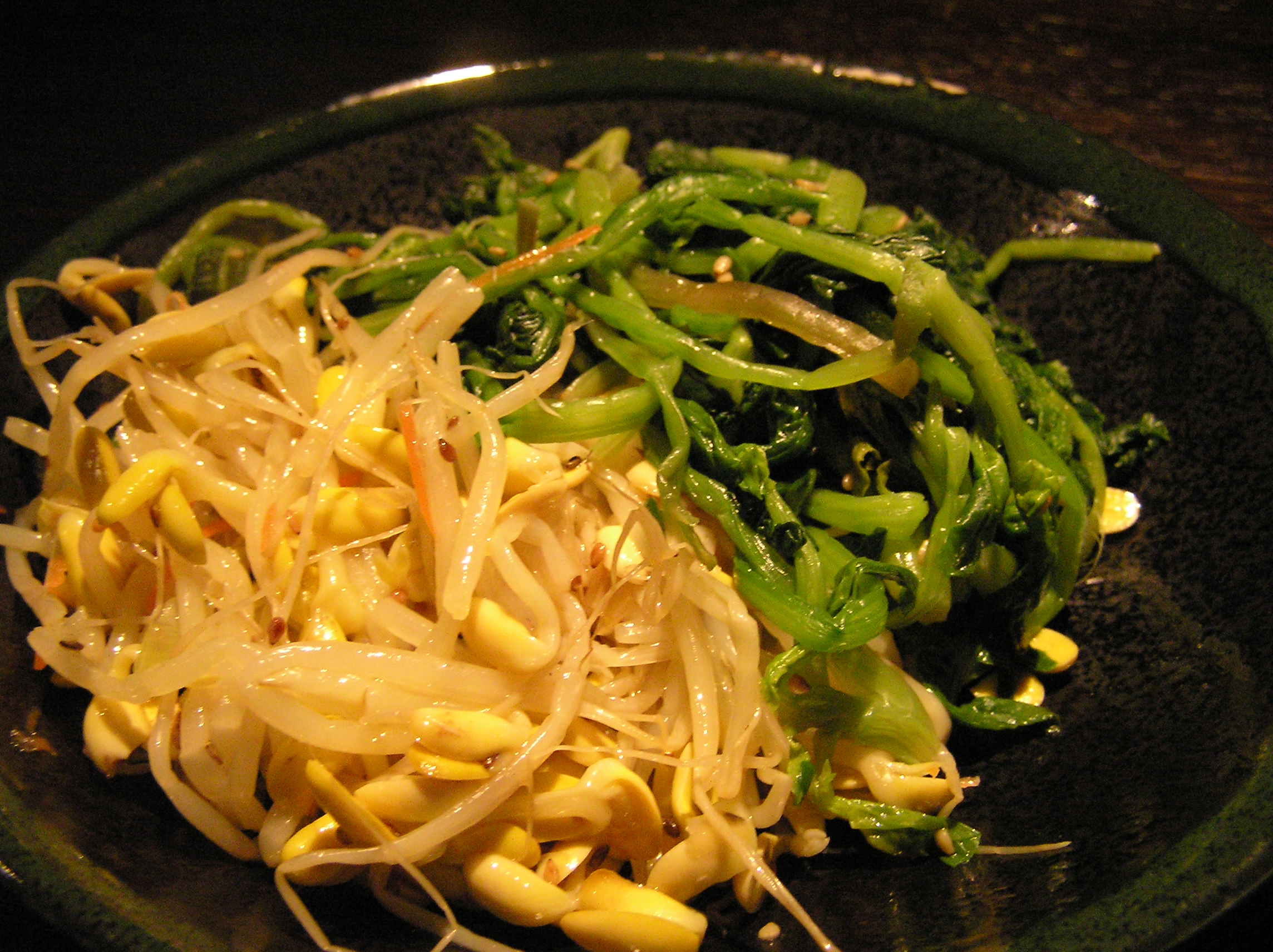 이런 조리법은 채소의 특성에 따르는데 침채에는 김치 종류가 해당한다. 김치에는 파, 마늘, 고추 등의 냄새나는 양념을 넣지 않는다. 섬유질이 질기거나 독성이 있어 그대로 먹을 수 없는 재료들은 볶거나 데쳐 편하게 먹을 수 있도록 하는데 이에 해당하는 나물이 고사리, 숙주, 시금치 등이다. 도라지, 무, 배추 등은 한 가지 방법에 한하지 않고 다른 방식으로도 조리된다. 계절에 맞는 나물을 쓰기도 한다. 무치기도 하고 간장과 함께 끓이기도 한다.[10][11]