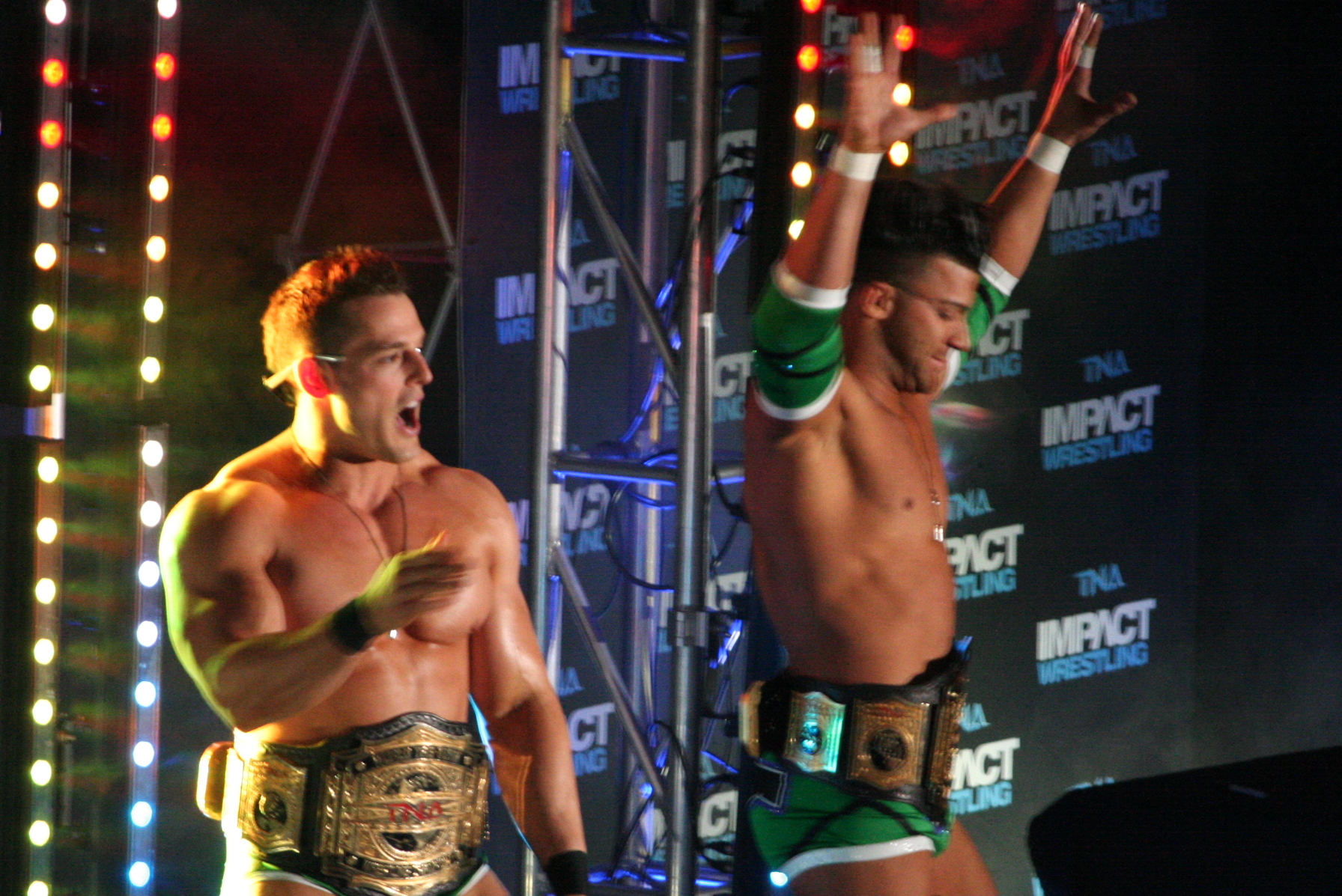 10월 27일, 바운드 포 글로리 프리쇼에서 '미스터 올림피아' 필 히스와 함께 등장한 더 브로맨스는 4자 태그팀 건틀렛 매치에서 승리하여 당일 TNA 월드 태그팀 챔피언십 도전권을 획득했다. 이어진 본 경기에서 건너와 제임스 스톰을 꺾고 첫 TNA 월드 태그팀 챔피언십을 획득했다.[29][30] 더 브로맨스는 10월 31일 ''임팩트 레슬링''에서 열린 첫 타이틀 방어전에서도 건너와 스톰을 상대로 승리하며 타이틀을 지켜냈다.[31]