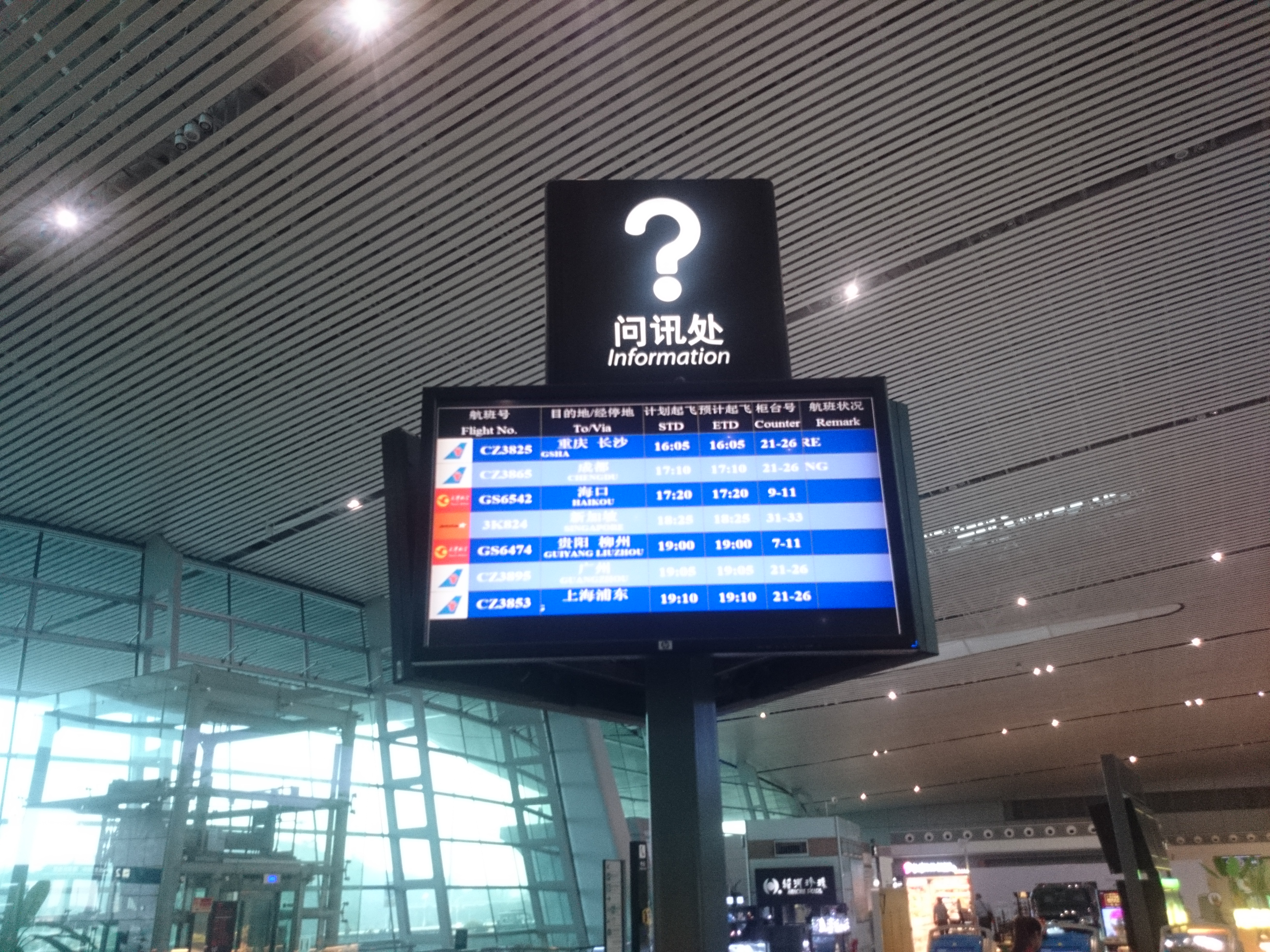 중국 남방 항공 | 베이징–다싱,[28] 창춘,[29] 창사, 창저우,[30] 청두–톈푸, 충칭, 다롄,[18] 광저우, 구이양, 하이커우, 항저우, 화이안,[31] 지난,[14] 징강산,[32] 쿤밍, 린이, 루저우,[18] 난징, 난퉁,[14] 난양,[31] 닝보, 칭다오, 상하이–푸둥, 타이위안,[29] 타이저우, 톈진,[29] 우한, 시안,[33] 쉬저우, 이창,[31] 이우, 정저우, 저우산[18] |
