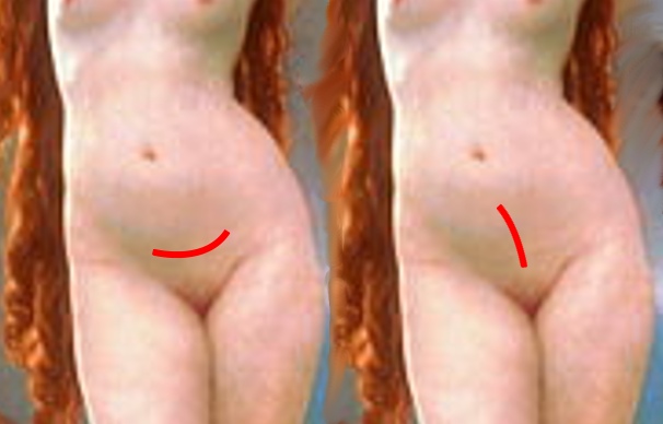 :* "하복벽 수평 절개(파넨스틸 절개)": 수술 후 흉터가 잘 보이지 않고, 비키니 착용 시에도 흉터가 눈에 띄지 않는다. 그러나 복직근 때문에 수술 범위를 넓게 유지하기 어렵다.