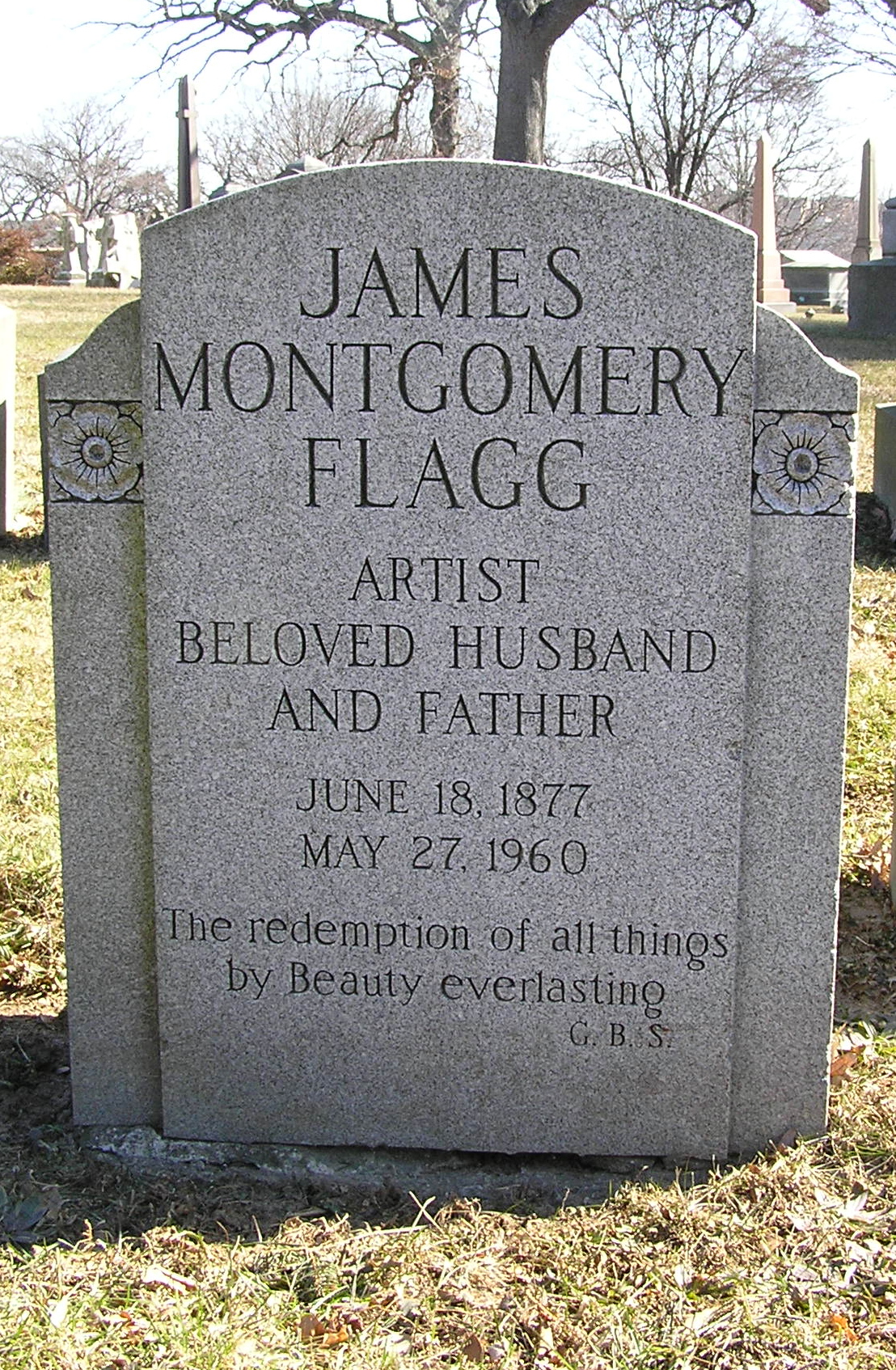 제임스 몽고메리 플래그는 1877년에 태어나 1960년에 사망한 미국의 삽화가, 화가, 작가이다. 그는 12세에 삽화를 게재하며 경력을 시작하여, 14세에 잡지 《라이프》의 기고 작가가 되었고, 이후 《저지》 매거진에서 일했다. 플래그는 1917년 제1차 세계 대전 당시 미합중군 모병 포스터인 "미합중국군에서 당신을 원한다"로 가장 유명하며, 이 포스터는 엉클 샘의 이미지를 널리 알렸다. 그는 또한 자화상과 초상화를 그렸으며, 말년에는 시력 저하로 예술 활동을 중단했다.
