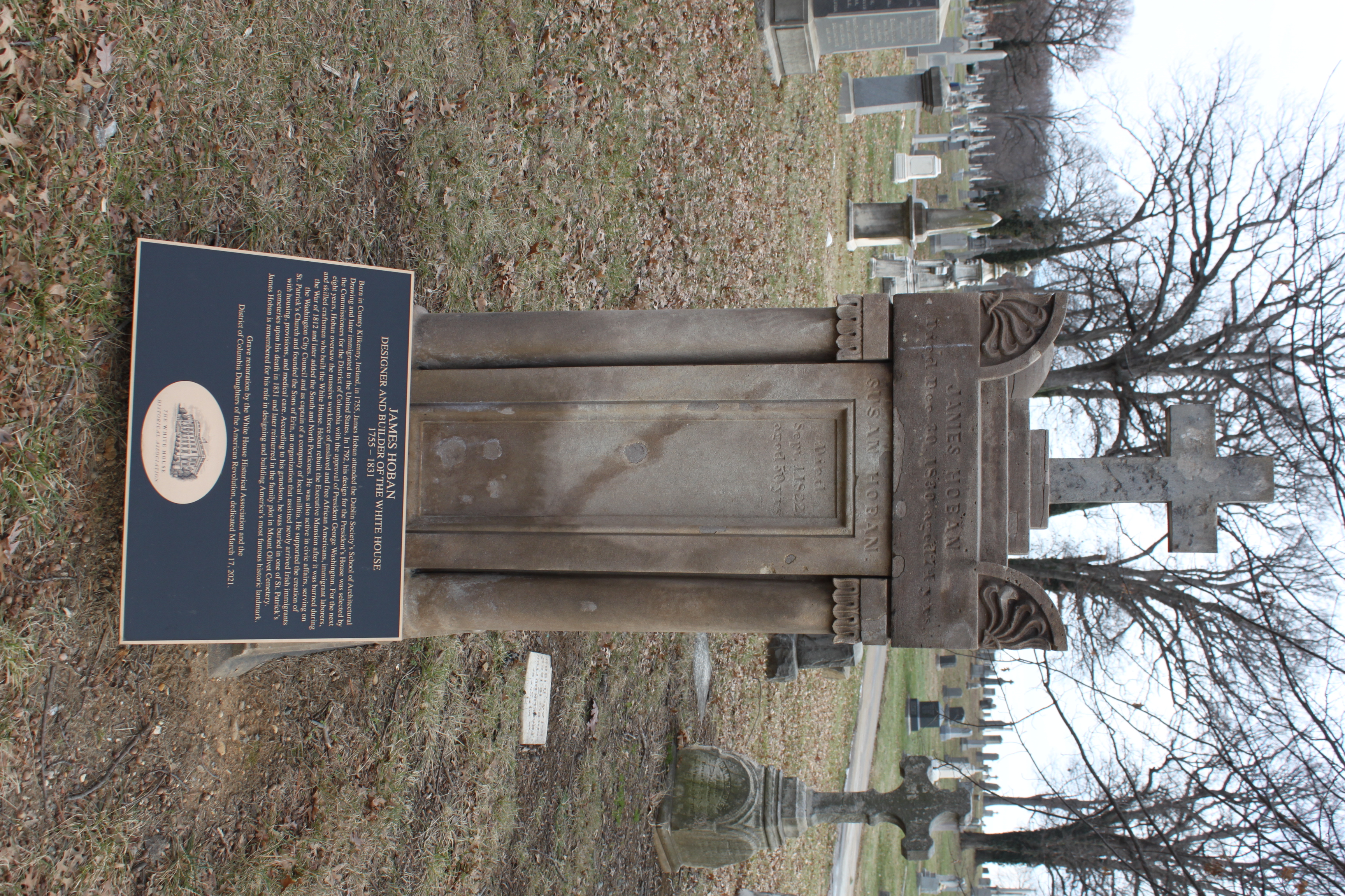 제임스 호번은 최소 3명의 노예를 소유했으며, 이들은 백악관 건설 현장에서 목수로 일한 것으로 알려져 있다. 노예들의 이름은 Ben|벤eng, Daniel|다니엘eng, Peter|피터eng로 기록되어 있으며, 이는 호번의 급여 명부에서 확인된다.[10][43]2. 5. 사망과 유산