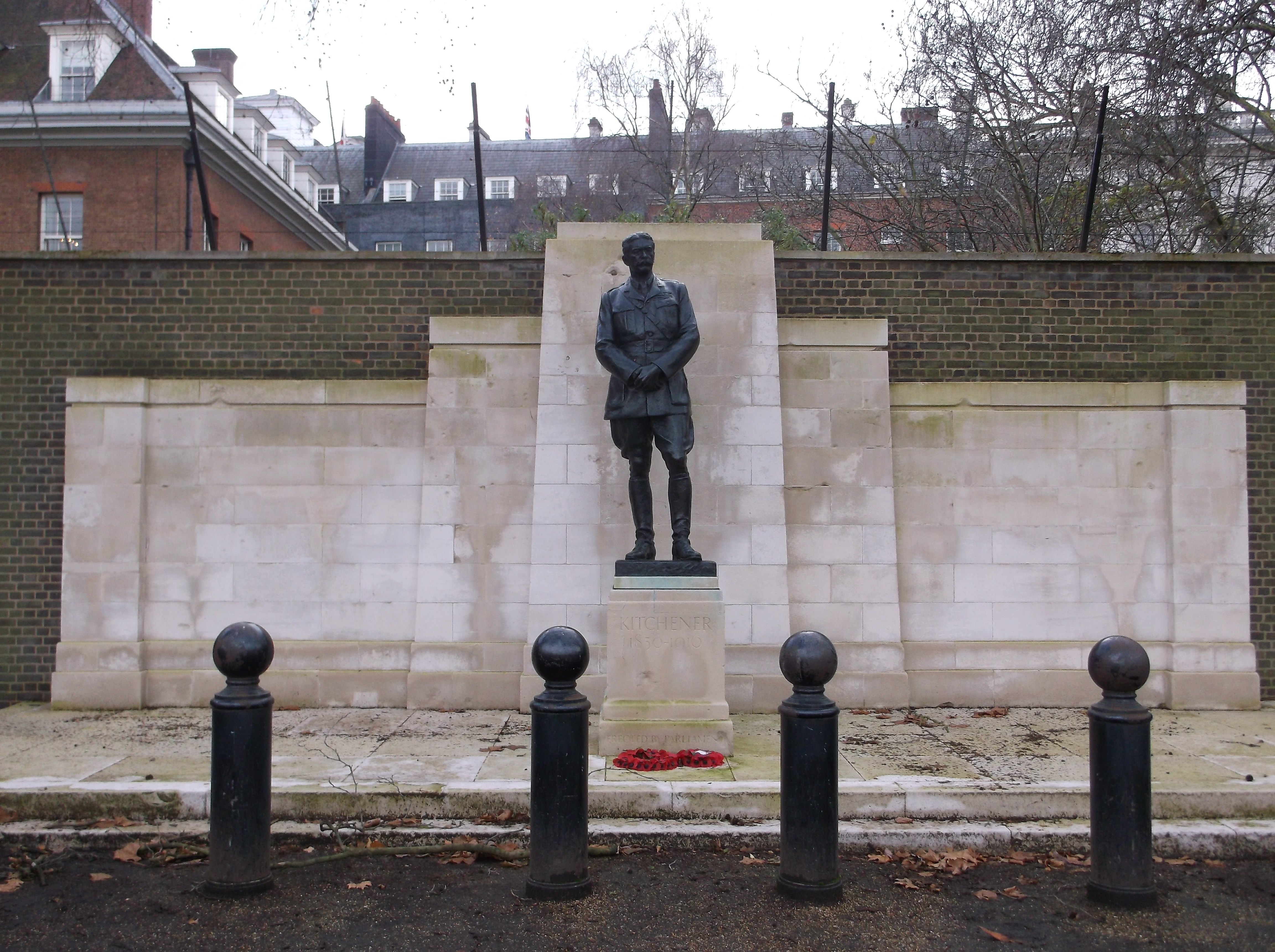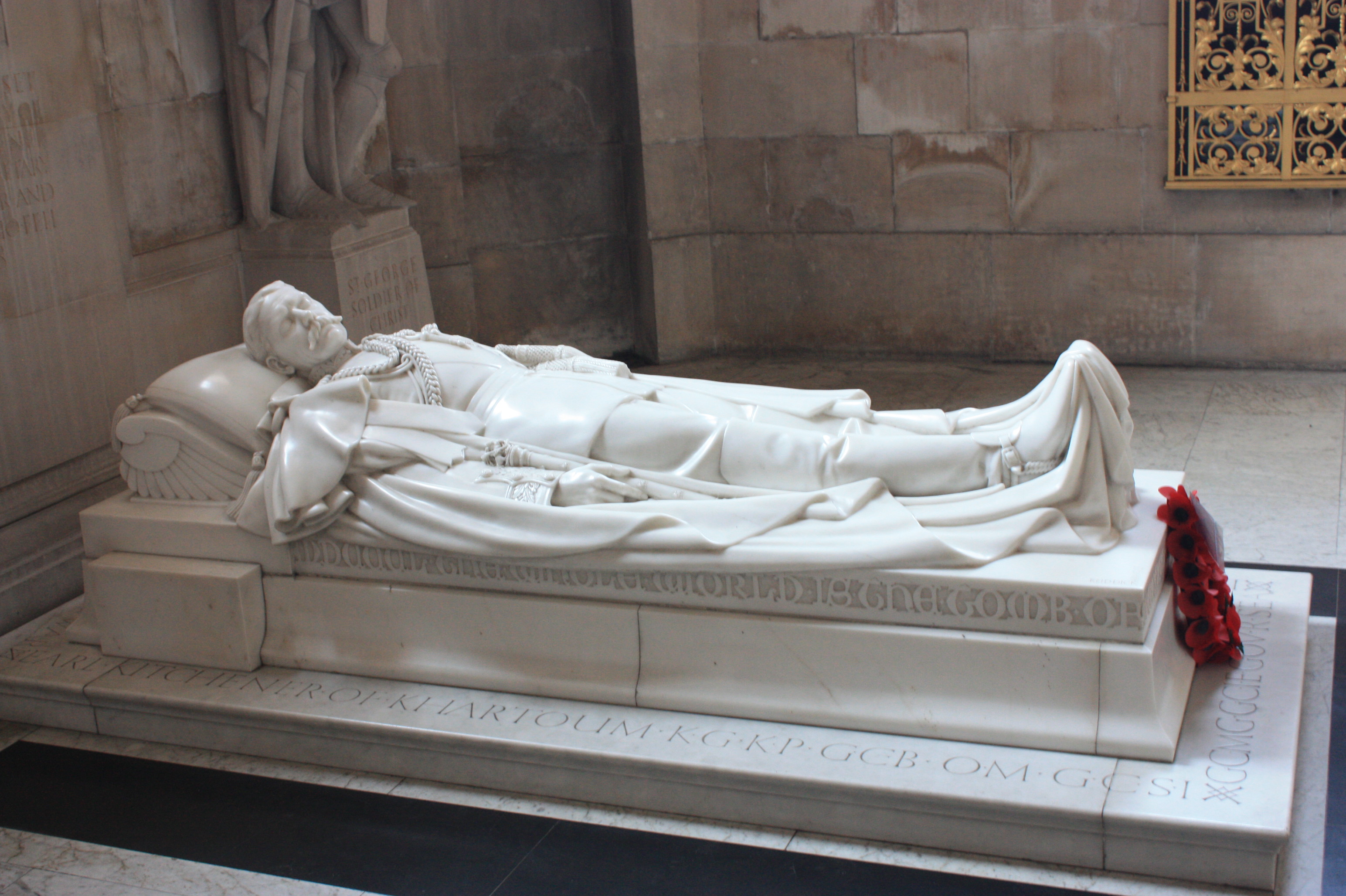 키치너는 런던의 세인트 폴 대성당 북서쪽 모퉁이의 예배당에 공식적으로 기억되고 있으며, 그를 기리는 추모식이 열렸다.[61] 런던 세인트 폴 대성당의 올 소울스 예배당은 1925년에 키치너 기념관으로 재헌납되었다.[61] 기념관은 정문 로비에서 볼 수 있으며, 엎드린 흰색 대리석 조각상은 데트마 블로우가 디자인했고,[69] 조각상과 성 조지, 성 미카엘의 조각상, 예배당의 피에타는 윌리엄 리드 딕이 조각했다.[70]