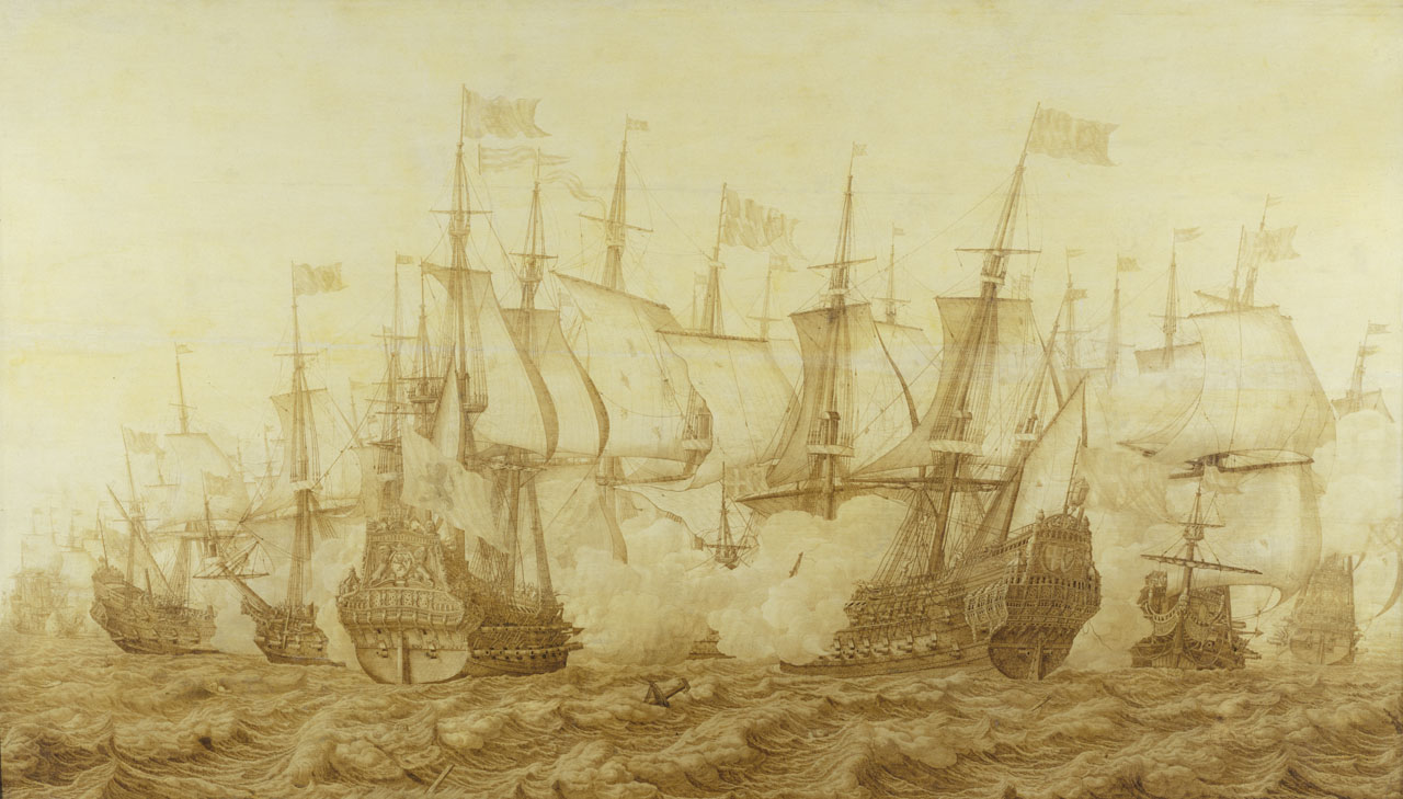던지니스 해전은 1652년 12월에 벌어졌다. 마르턴 트롬프 제독이 이끄는 네덜란드 함대가 잉글랜드 함대를 격파했다.[71]