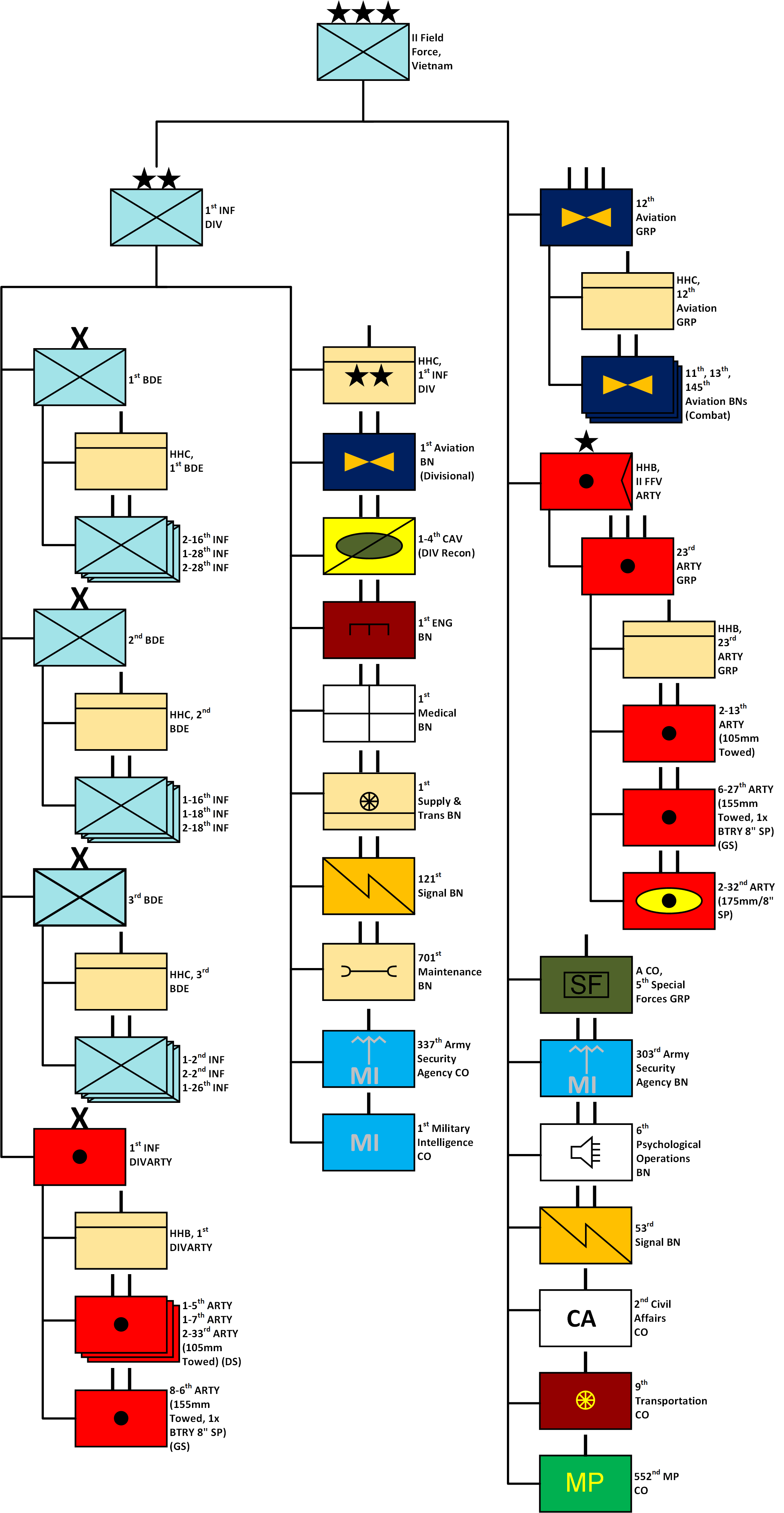 부대 제51보병(공수) F중대(장거리 정찰) 인디애나 주 방위군 소속, 제151보병(공수) D중대(레인저) 제75보병(공수) D중대(레인저) 제2야전군 포병대 HHB 제303ASA대대 제6심리작전대대 제2민사중대 제552헌병중대 제9수송중대 제44육군 우편중대 제29화학분견대 제61의무분견대(MB) 제7군사사 분견대 제219군사정보분견대 제14공보분견대 제16공보분견대 제16통신분견대 제265FA 레이더분견대(AN/TPS-25)