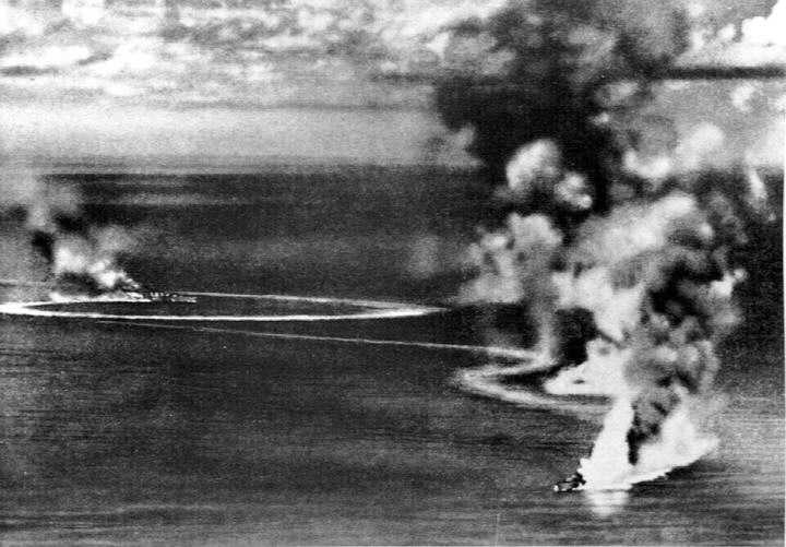 1942년 8월 11일, 페데스탈 작전 중 격렬한 공습을 받으며 몰타로 향하는 호송선
