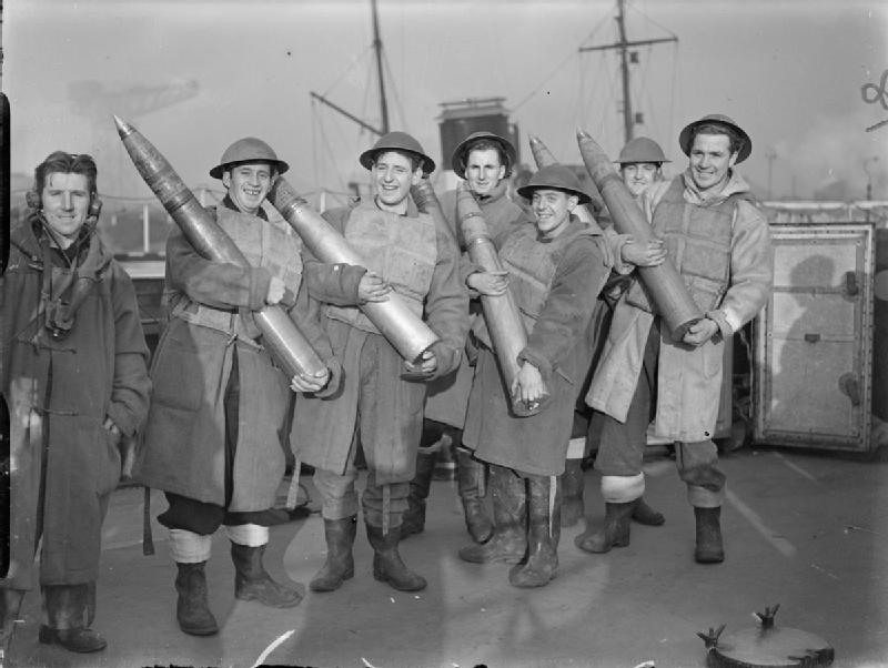 HMS Vivien영어의 포병들이 대공포탄을 전시하고 있다, 1940년 11월 11일.
