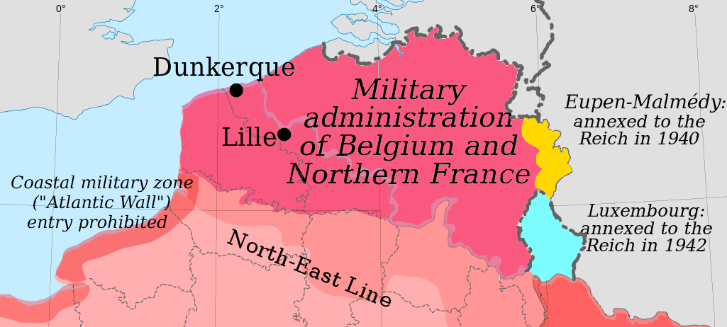 벨기에 전투 이후 벨기에는 독일에 의해 군정 통치를 받게 되었다. 1940년 5월, 독일은 브뤼셀을 행정 중심으로 하여 벨기에와 프랑스 노르-파드칼레 두 개의 데파르트망을 관할하는 벨기에 및 북 프랑스 군정(Militärverwaltung in Belgien und Nordfrankreich)을 창설했다.[8] 또한 1919년 베르사유 조약 이후 벨기에가 점령했던 독일어 사용 지역인 오이펜-말메디를 병합했다.[10]