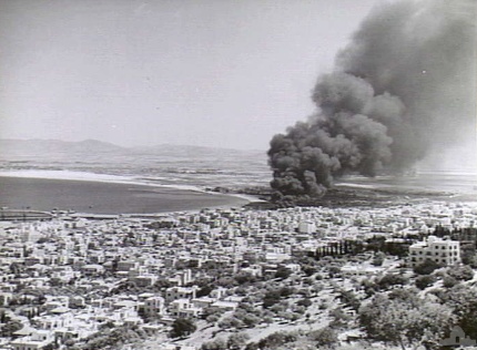 모술에서 시작된 영국 송유관이 닿는 하이파 해변에서, 도데카니소스 제도에서 이륙한 10대의 이탈리아 폭격기가 키프로스의 영국군 기지를 지나 하이파 정유소와 정제소에 50개의 폭탄을 투하했다. 이 공습으로 며칠 동안 불이 꺼지지 않는 화재가 발생했고, 정유소의 생산량은 한 달간 마비되었다. 카르멜 산 기지에서 영국군 전투기가 출격했지만, 이탈리아 폭격기는 이미 이탈리아령 도데카니소스의 기지로 귀환한 후였다.[12]
