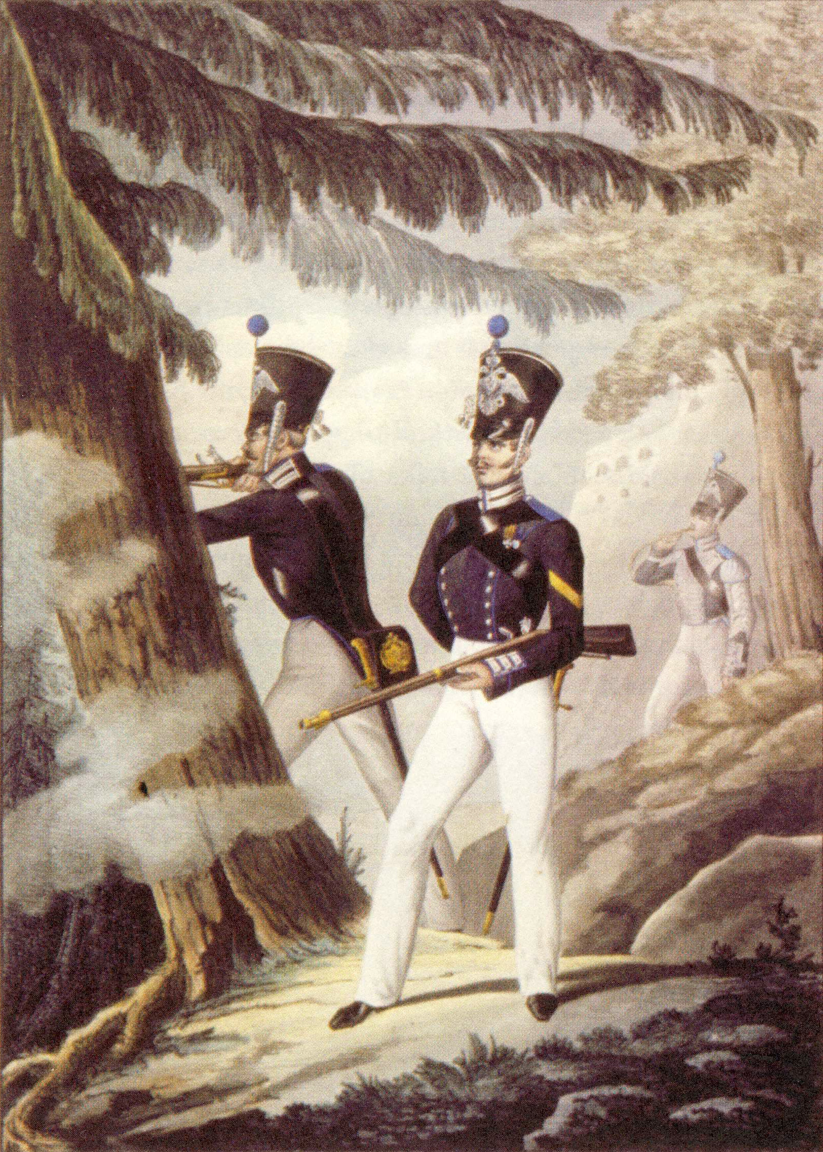 제3친위 핀란드 소총대대의 첫 전투 배치는 1831년 11월 봉기를 진압하기 위한 작전에 투입되었다. 핀란드에서는 대대의 동원에 대해 언론과 대대 내부에서 긍정적이고 자랑스러운 반응이 있었다. 핀란드 군대를 국외로 파병하거나 폴란드 봉기를 진압하는 데 참여하는 것은 핀란드인들에게 아무런 거리낌이 없었다. 대대는 1월 12일 746명의 병력으로 핀란드를 출발하여 상트페테르부르크까지 도보로 행군했으며, 3월에는 폴란드까지 진군했다. 대대는 4월 초에 다른 제국군과 함께 첫 실전을 치렀고, 핀란드 군인들은 곧 뛰어난 사격수로서 명성을 얻었다. 대대의 임무는 러시아 주력이 남부에서 전투를 벌이는 동안 부그강과 나레프강 사이 지역에서 폴란드군을 몰아내는 것이었다. 5월에는 폴란드의 효과적인 반격으로 인해 비아위스토크까지 후퇴해야 했다. 그 후, 비스와 강을 건너 바르샤바를 서쪽에서 공격하기 위해 서쪽에서 먼 길을 행군해 온 오스트로엥카에서 러시아군에 합류했다. 1831년 9월 6일부터 8일까지 근위 소총병들은 바르샤바를 점령한 제국군에 합류했다.[13]