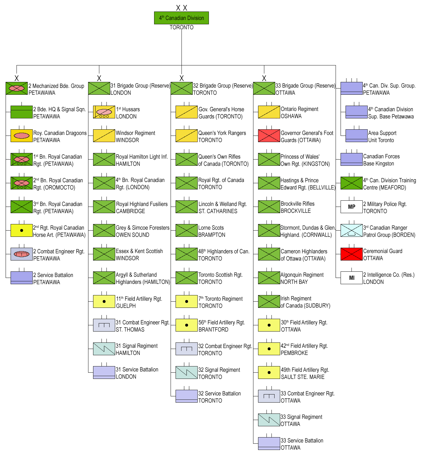 - * 제32캐나다 여단 (토론토) (골든 호스슈 및 온타리오 중부 관할)
