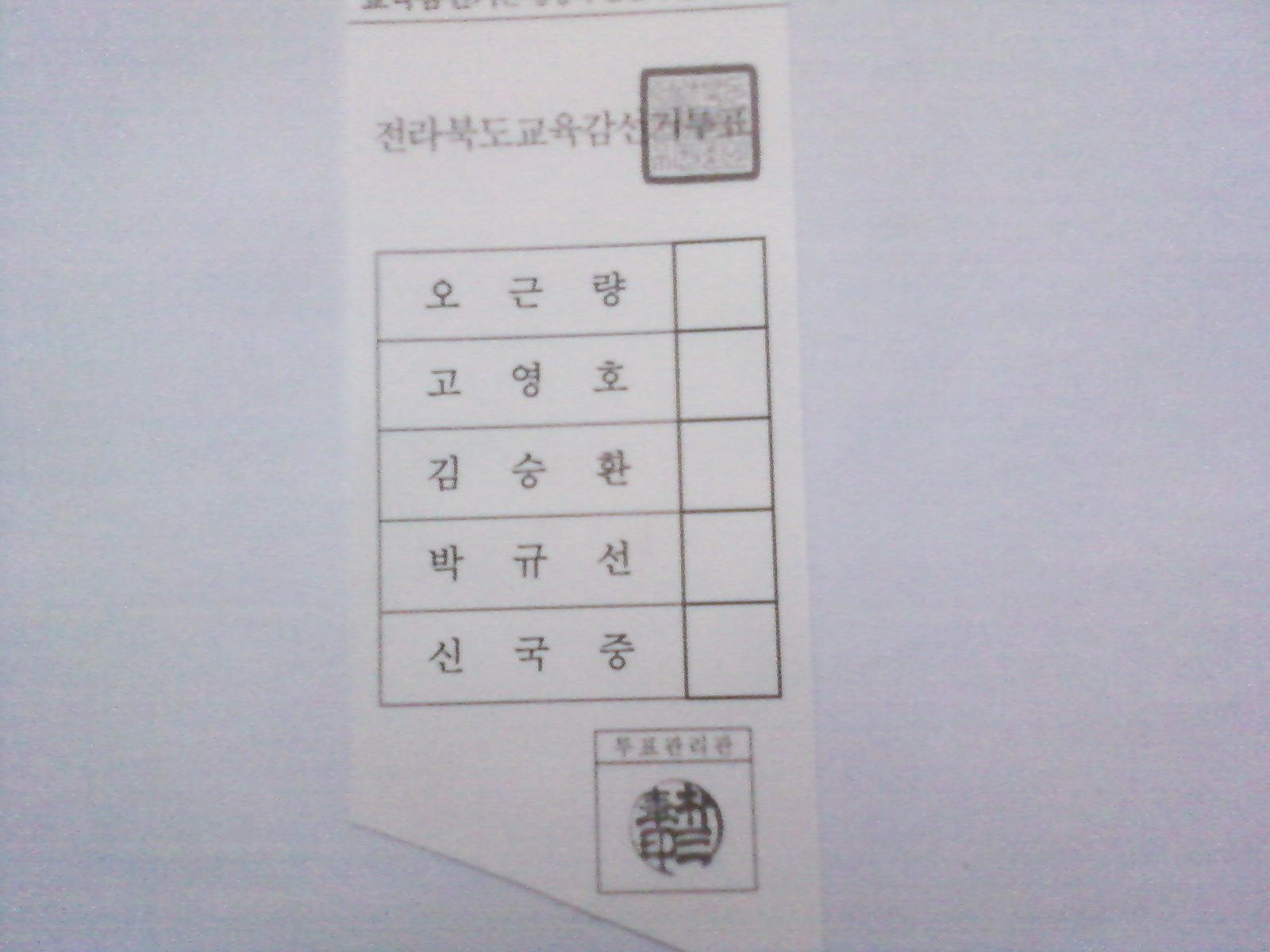 제5회 전국동시지방선거 전라북도교육감 선거에서 무소속 김승환 후보가 236,947표(28.99%)를 얻어 당선되었다. 오근량 후보는 234,666표(28.71%)를 얻어 낙선하였다. 그 외 후보로는 박규선(175,992표, 21.53%), 고영호(99,641표, 12.19%), 신국중(70,008표, 8.56%) 후보가 출마하였다.7. 교육의원 선거