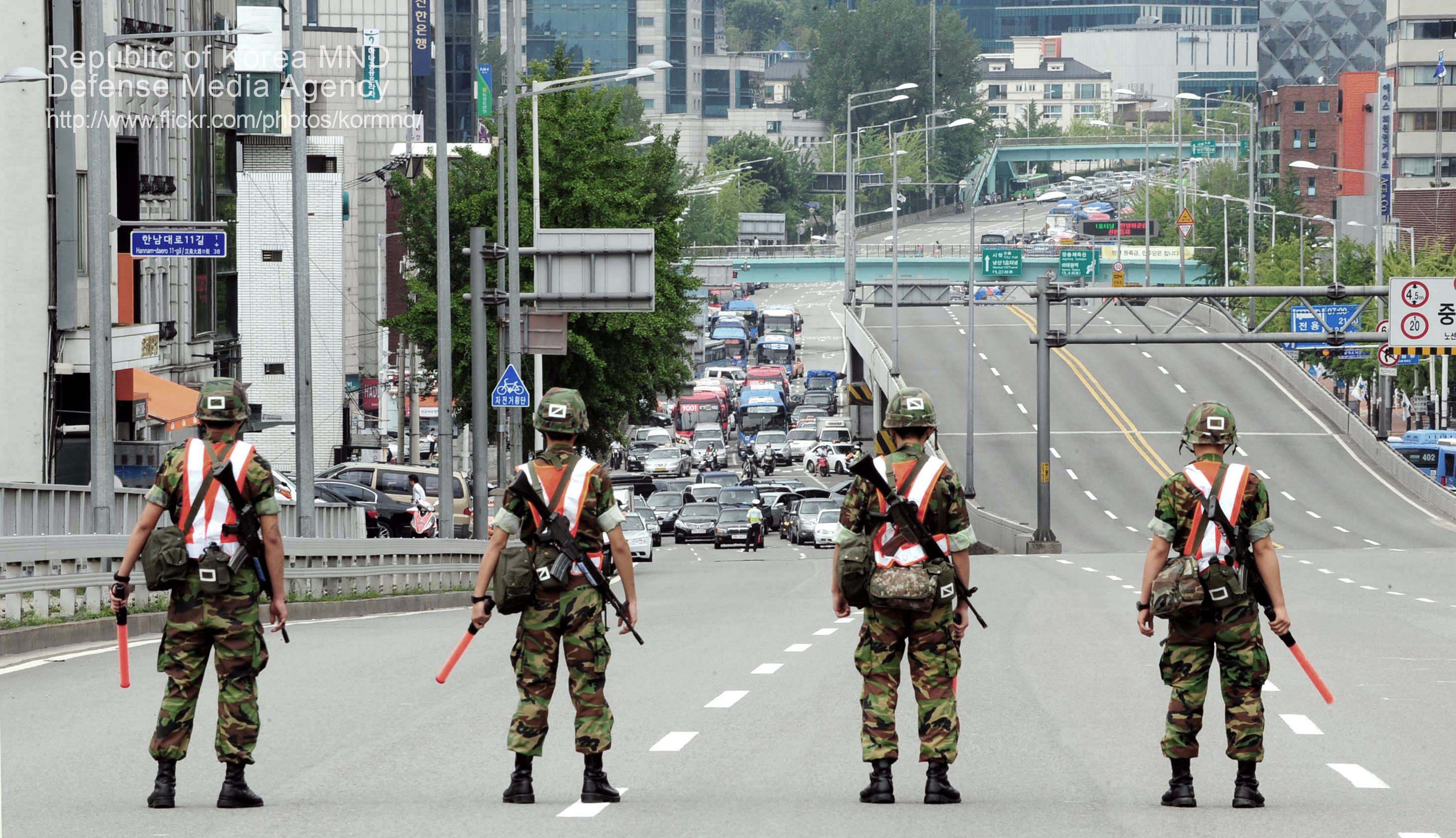 2012년 제56보병사단 병력이 한남대교를 통과하는 차량을 통제하고 있다.