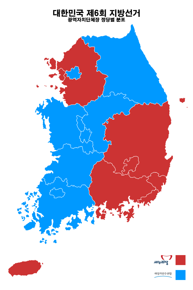 기초자치단체장 선거: 주민 직접 투표로 최다 득표 후보 당선 (세종특별자치시, 제주특별자치도는 실시하지 않음)