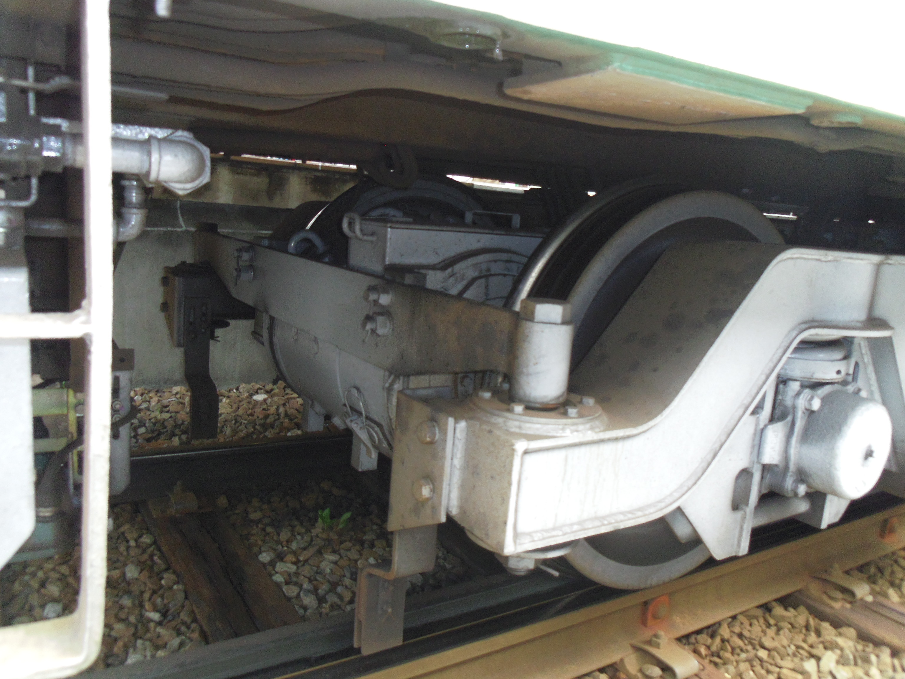 - 바 서스펜션 방식: 모터의 한쪽 끝에 막대 모양의 부품(바)을 붙이고, 이 바를 대차 프레임의 가로보에 고정하는 방식이다. 대차 프레임과 바 사이에는 스프링을 끼운다. 축거가 짧은 대차의 경우에 유리하며, 주로 노면 전차, 경편 철도에서 많이 사용되었다. 에노시마 전철, 하코네 등산 철도 (현 · 오다큐 하코네) 등 비교적 소형 차량을 사용하는 철도에서 사용되었지만, 대형 전차에서는 소수파이다.[4]