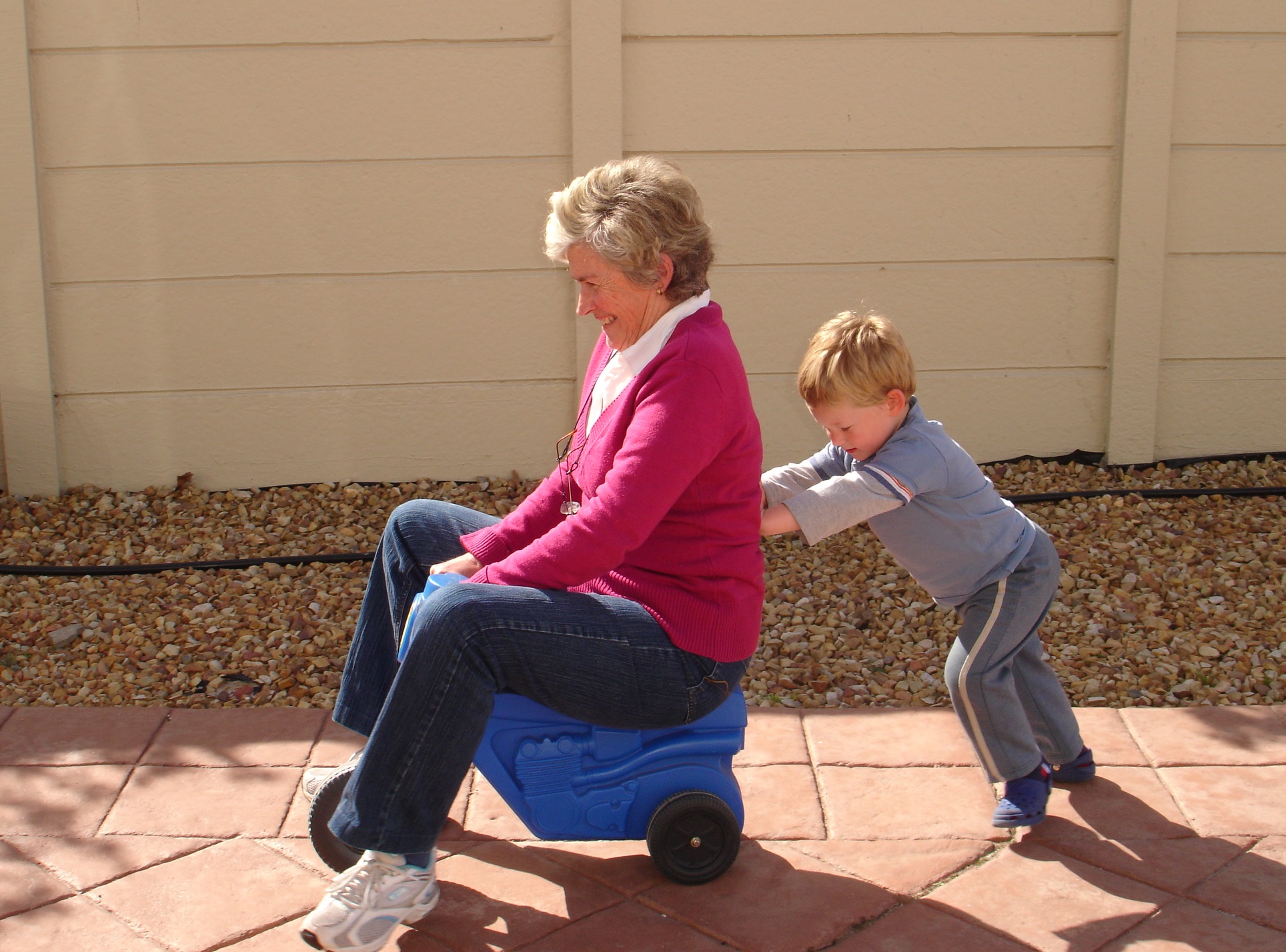 그러나 손주 양육 참여에는 긍정적인 효과도 있다. 손주 양육에 참여하지 않는 조부모들에 비해 장시간 양육에 참여하는 조부모들은 인지 능력이 뛰어나다[95]. 구체적으로는, 손주 양육을 하는 고령의 조부모들은 고령이 되어도 정신적 능력을 유지하기 쉽고, 치매와 같은 질병의 진행도 비교적 적다[96]. 더 나아가, 손주와의 빈번한 접촉은 인지 능력의 노화를 늦추고 더 활기차고 활동적인 삶을 보낼 가능성을 높인다[78][95]. 또한, 손주와의 접촉은 신체 활동의 기회가 된다는 장점도 있다.[97]