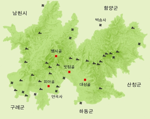 지리산 유격 지구 | 지리산을 중심으로 남쪽의 백운산과 북쪽의 덕유산을 연결하는 전남, 경남, 전북의 산악 지대 |