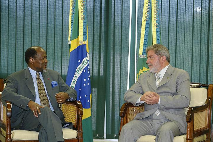 2004년 시사누가 브라질 대통령 루이스 이나시우 룰라 다 시우바를 만나는 모습.