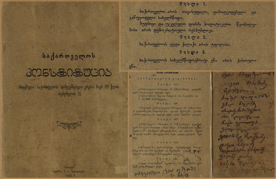 1921년 2월 21일 조지아 구성 의회가 채택한 조지아 헌법 조각