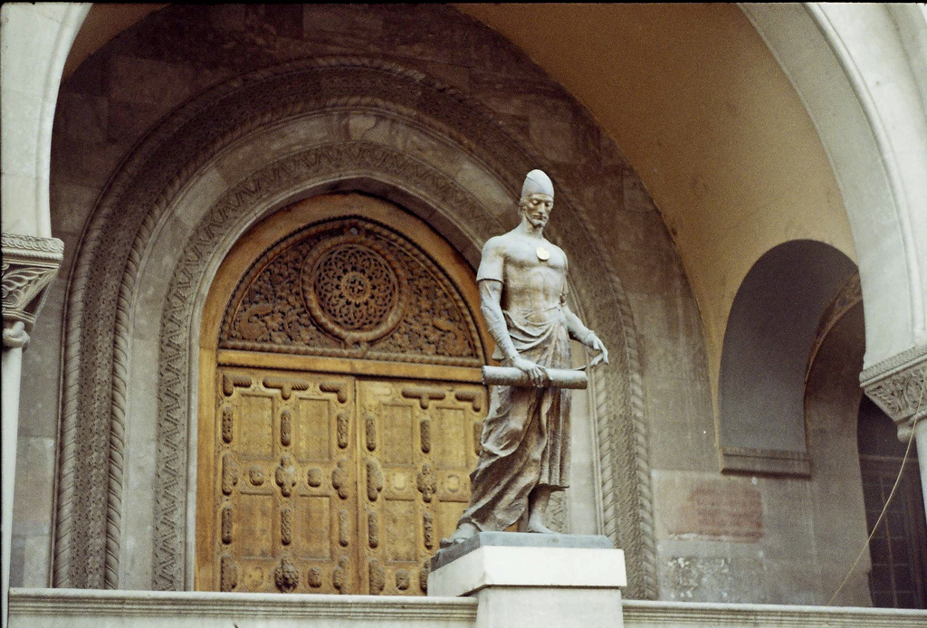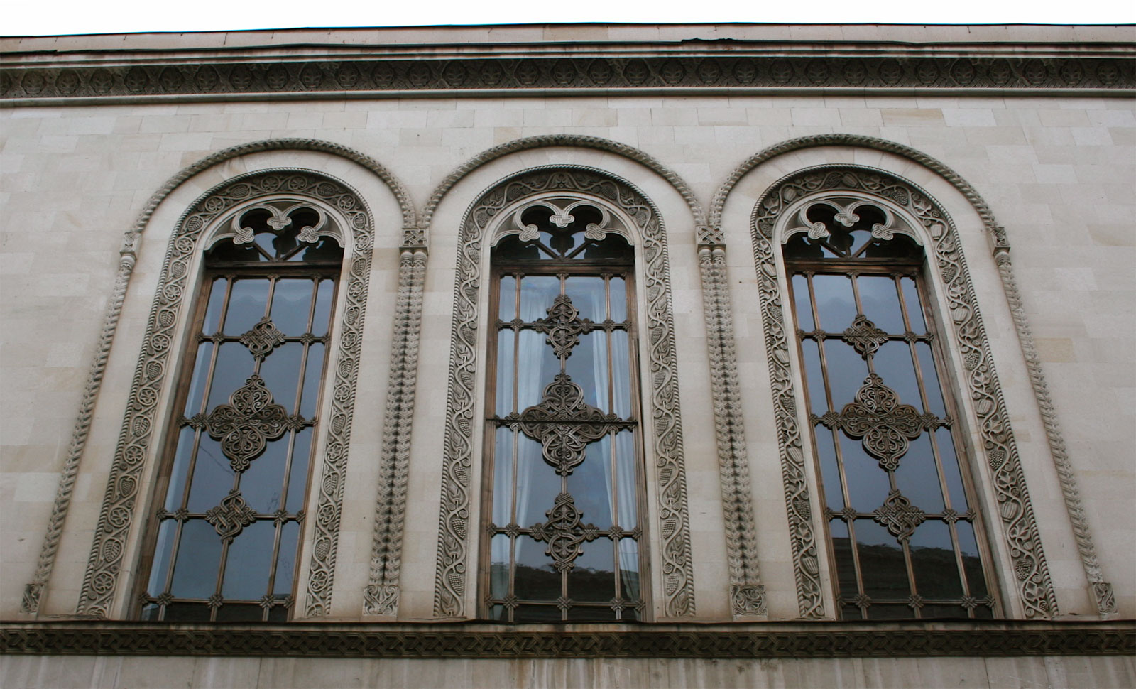 조지아 국립 의회 도서관 건물 #1은 1913~1916년에 건축가 아나톨리 칼긴과 예술가 헨리크 흐리니에프스키에 의해 귀족 은행으로 건설되었다.[1][2]