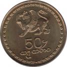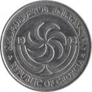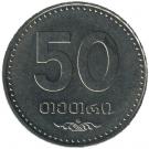 ![]() | ![]() | 50 테트리 | 19mm | 2.45g | 황동 | 매끄러움 | 11세기 삼타비시 대성당의 동쪽 정면에 있는 그리핀의 부조, 금액 표기 “50”과 아래쪽의 თეთრიka () 명칭. | |