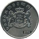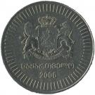 ![]() | ![]() | 50 테트리 | 24mm | 6.52g | 스테인리스 스틸 | 매끄러움 | 금액 표기 “50”, თეთრიka () 명칭. | 조지아 국장, 상징적인 태양 광선 이미지로 둘러싸여 있으며, საქართველოka 명칭과 국장 아래에 발행 연도 “2006”이 새겨져 있다. |