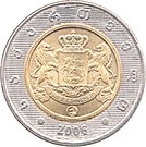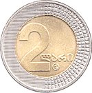 ![]() | ![]() | 2 라리 | 27mm | 8g | 이중 금속 구리-알루미늄-니켈 중앙부, 구리니켈 테두리 | 톱니 모양, 조지아어와 영어로 국가명 새김 (საქართველოka 및 "Georgia") | 금액 표기 “2”와 ლარიka (lari) 명칭. 은색 밀링 표면에는 태양 광선의 중앙 상징적 이미지를 나타내는 독창적인 디자인이 있다. | 조지아 국장, 원형 საქართველოka 명칭 테두리, 발행 연도 “2006”이 새겨져 있다. |