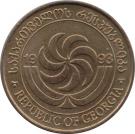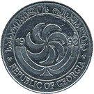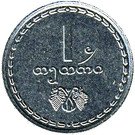 ![]() | ![]() | 1 테트리 | 15mm | 1.38g | 스테인리스 스틸 | 매끄러움 | 동전 상단에 금액 표기 "1", თეთრიka () 명칭과 아래쪽의 포도나무 덩굴 | 보르갈리 (7개의 회전하는 광선을 가진 조지아의 태양 상징) 위에 그리스도교 생명의 나무, 주조 연도 "1993", 조지아어와 영어의 가장자리 명칭 საქართველოს რესპუბლიკაka 및 "Republic of Georgia". |