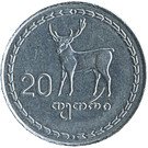 ![]() | ![]() | 20 테트리 | 25mm | 5g | 스테인리스 스틸 | 매끄러움 | 조지아 화가 니코 피로스마니의 그림 속 사슴, 왼쪽에 금액 표기 “20”, 아래쪽에 თეთრიka () 명칭. | |