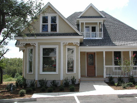 1900~1910년의 "패턴 북" 하우스는 2006년에 텍사스주 라운드 록에서 조지타운으로 옮겨졌다. 이곳은 사우스 샌 게브리엘 강을 내려다보고 있다.