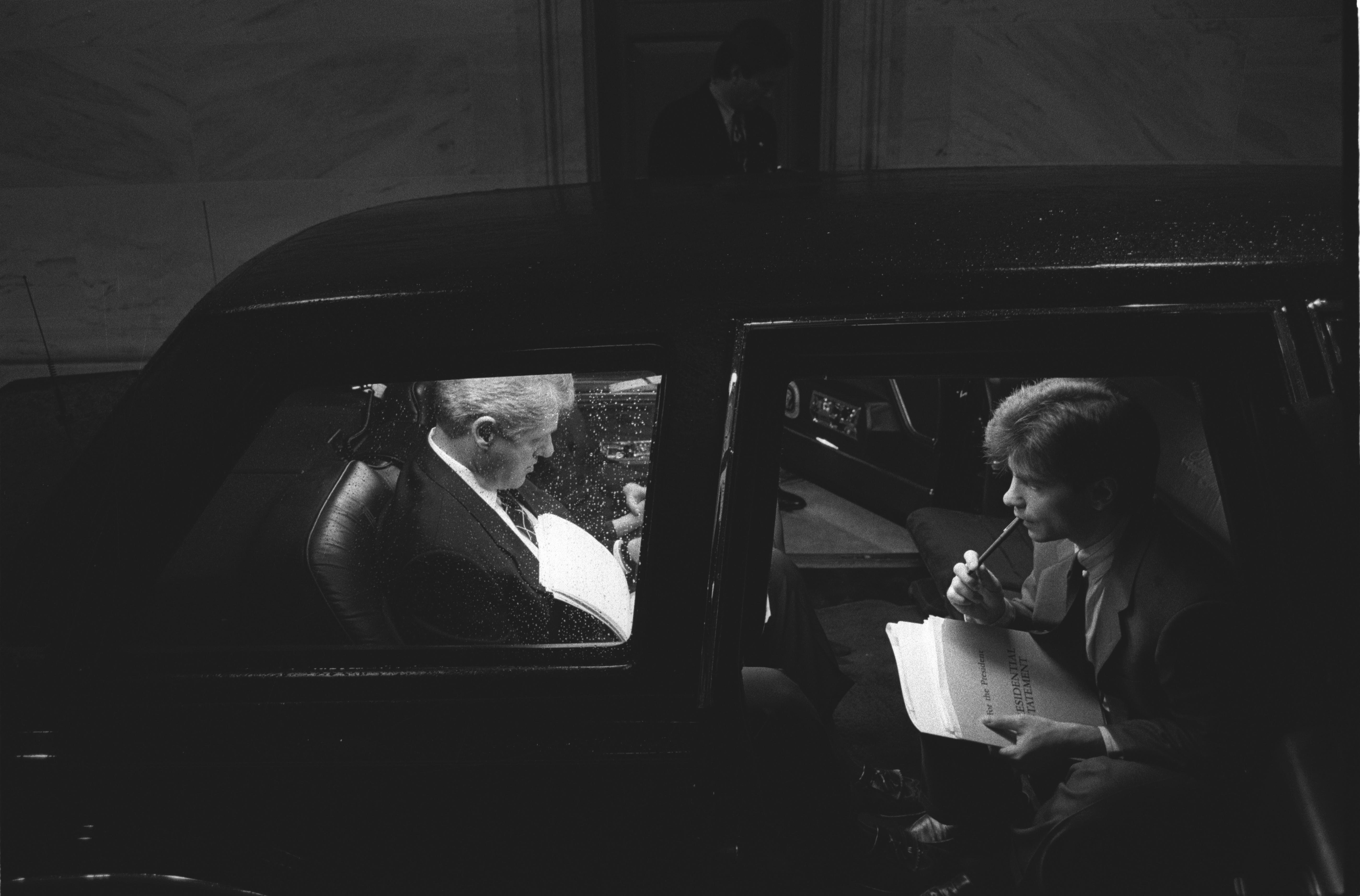 스테파노펄러스와 대통령 빌 클린턴은 1994년 국정 연설을 준비하고 있다.
