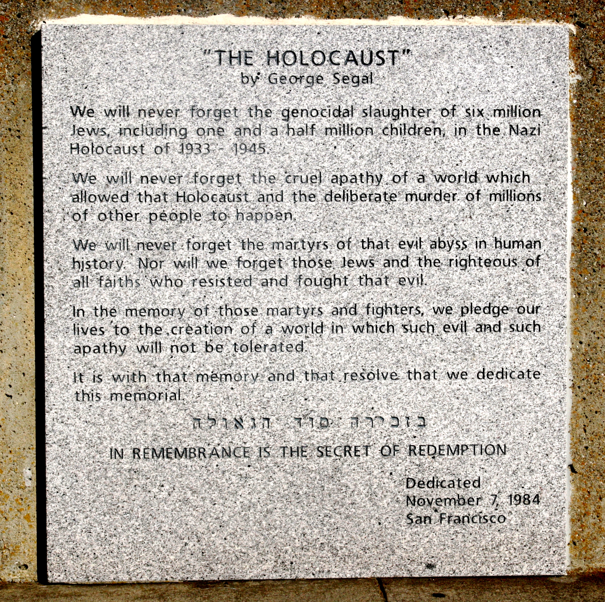 《명예의 전당 캘리포니아 궁전 홀로코스트 기념관》(Holocaust Memorial at California Palace of the Legion of Honor) | 1984 | 샌프란시스코 | |
