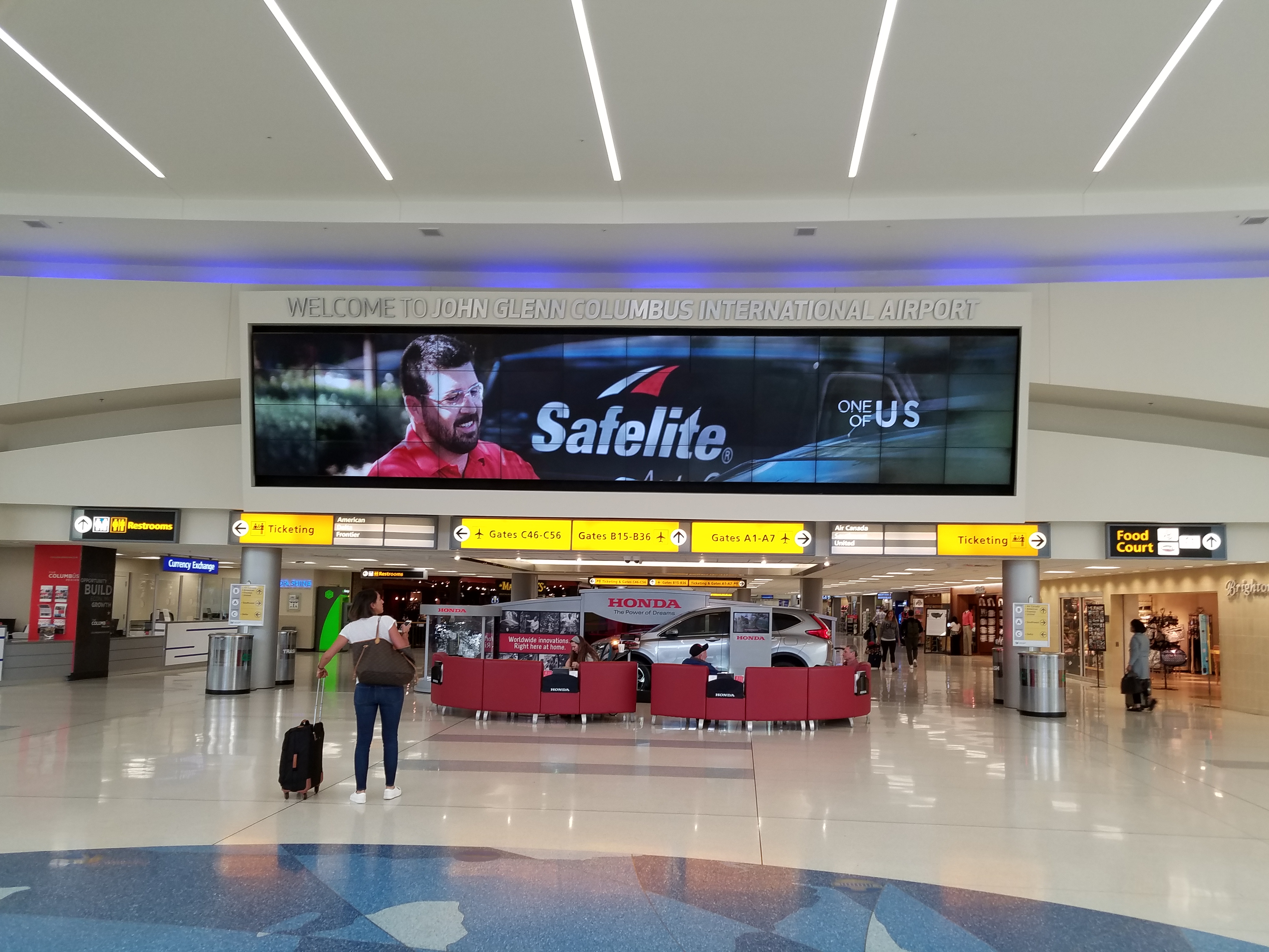 존 글렌 콜럼버스 국제공항의 초기 주요 항공사는 TWA였다. TWA는 70년 동안 콜럼버스에서 운항했다. 2000년까지 특정 승객을 위한 클럽을 제공했으나, 경영 위기로 아메리카 웨스트 항공에 게이트와 클럽 시설을 넘겼다.[80]