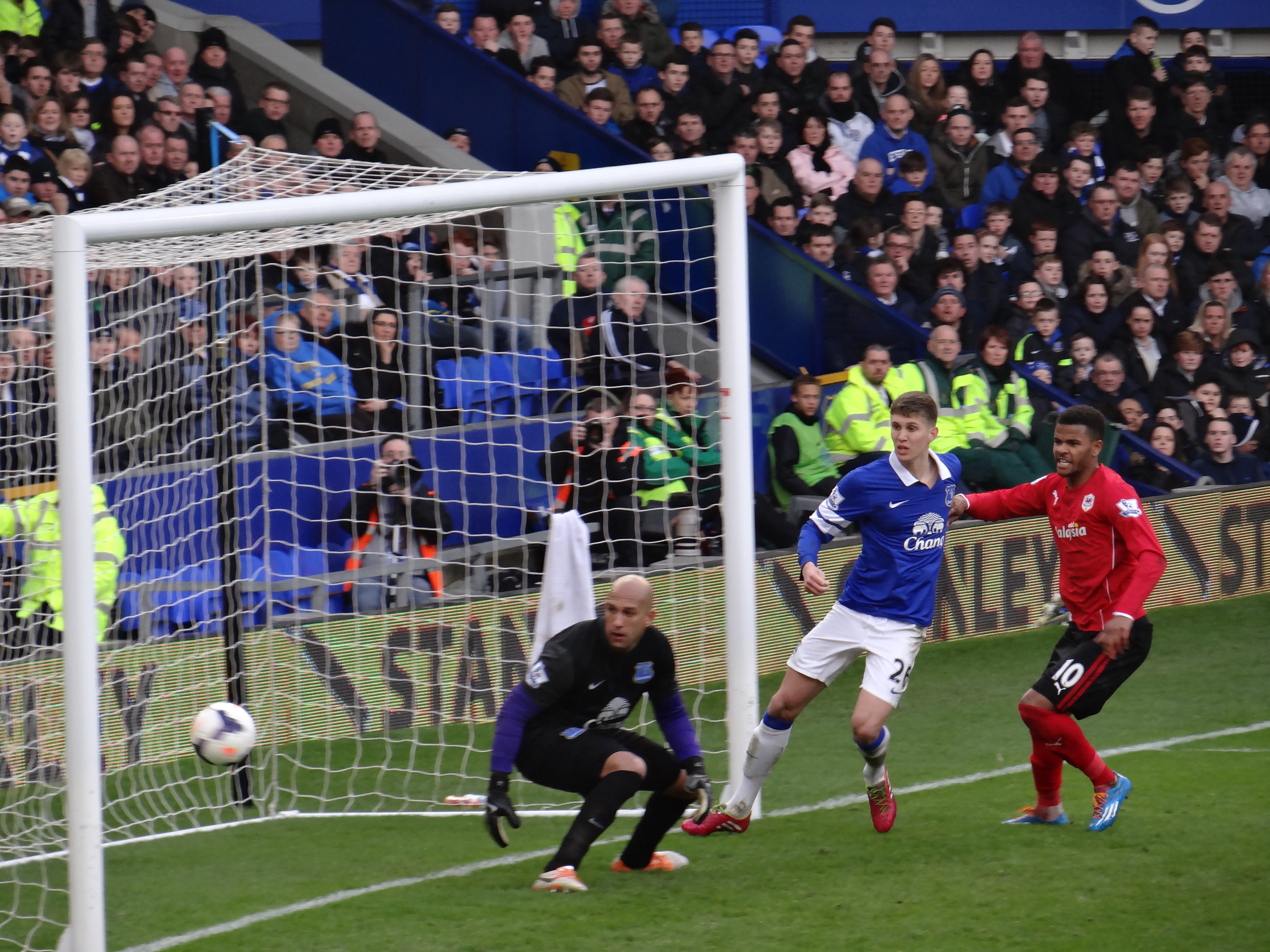 존 스톤스는 2013년 1월 31일 에버턴 FC와 5년 반 계약을 체결했으며,[20] 이적료는 약 300만 파운드로 알려졌다.[21] 2013년 8월 28일, 스티버니지 FC와의 리그컵 경기에서 에버턴 데뷔전을 치렀고,[23] 2013년 9월 14일 첼시 FC와의 홈경기에서 스티븐 네이스미스를 대신해 후반 교체 투입되어 프리미어리그 데뷔전을 치렀다.[24] 2014년 1월 1일 스토크 시티 FC와의 원정 경기에서 첫 프리미어리그 선발 출전을 기록했다.[25]