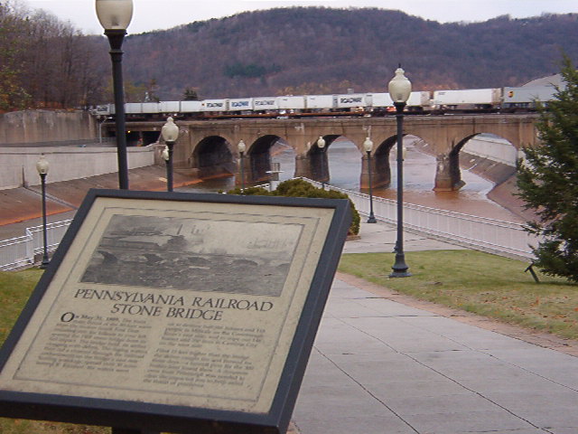 1880년대 이 지역에서는 홍수가 거의 연중 행사와 같았다. 1889년 5월 30일, 메모리얼 데이 의식과 퍼레이드 후에 비가 내리기 시작했다. 다음날, 물이 거리를 채웠고, 북동부 산악 지대에 있는 인공 호수를 지탱하는 댐이 붕괴되었다는 소문이 돌기 시작했다. 그 소문은 현실이 되어, 추산 2천만 톤의 물이 구불구불한 계곡으로 흘러들어 약 22.53km 정도 떨어진 존스타운에 도달했다. 존스타운의 파괴는 불과 10분 정도의 일이었다. 번성하는 철강 도시의 가옥, 교회, 술집, 도서관, 기차역, 거리의 가로등, 롤러 스케이트 링크, 두 개의 오페라 하우스가 진흙과 쓰레기 속에 파묻혔다. 당시 약 3만 명의 주민 중 최소 2,209명이 사망한 것으로 밝혀졌다. 이 홍수 동안 끔찍한 대화재는 스토니크리크와 리틀콘마우강이 합류하여 콘마우강이 되는 지점에 놓인 석조 펜실베이니아 철도 다리에서 일어났다. 이 다리는 현재도 남아있다.[60]