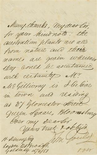 호주를 떠난 후에도 존 굴드는 1857년부터 1899년까지 국립 빅토리아 박물관 관장이었던 프레데릭 맥코이를 포함하여 식민지의 많은 과학자 및 수집가와 서신을 주고받았다. 이 편지에는 박물관의 소장품을 위한 포유류, 곤충, 조개 껍질, 조류 가죽을 포함한 표본의 판매와 박물관 도서관을 위한 굴드의 과학 출판물의 사본이 자세히 설명되어 있다. 굴드는 그 당시 서양 과학에 새로운 조류 종이 있으면 묘사하고 그림을 그리기 위해 런던으로 보내야 한다고 주장했다.[18]