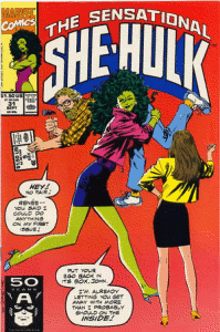 쉬헐크가 판타스틱 포와 함께 활동하는 동안, 그녀는 번이 쓰고 그림을 그린 ''The Sensational She-Hulk''라는 제목의 이야기로 마블 그래픽 노블 #18(1985년 11월)에 등장했다.[67]
