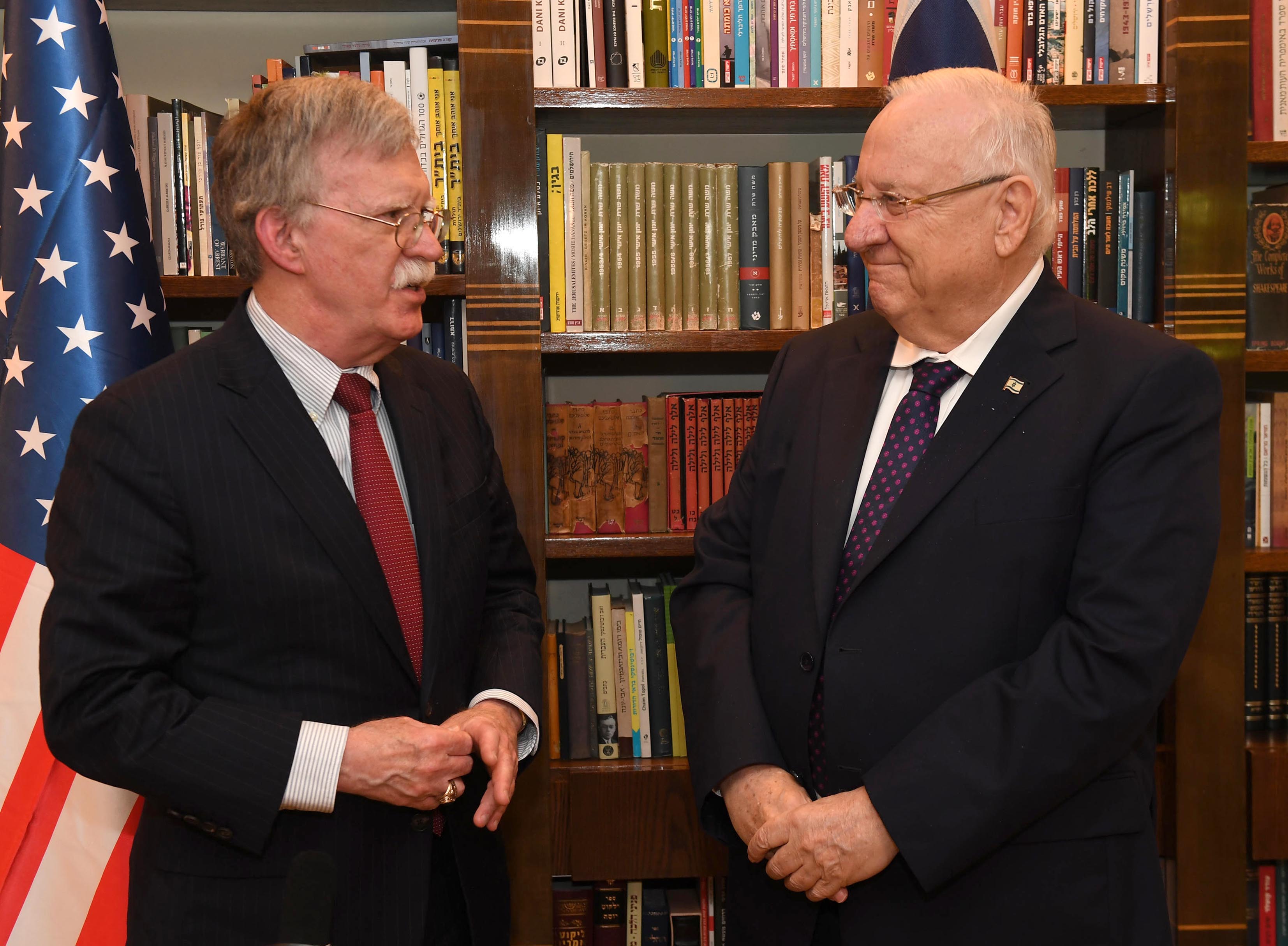 2018년 4월, 볼턴은 트럼프 대통령에게 이란 핵 협상에서 철회할 것을 압박했고, 트럼프는 한 달 후 이를 실행했다.[160]