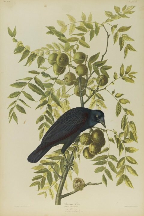 1827년부터 1838년까지, 오듀본의 그림을 바탕으로 한 채색 동판화 435점으로 구성된 ''미국의 새들''이 영국에서 출판되었다. 이 책은 실물 크기의 조류 그림과 생동감 넘치는 묘사로 큰 성공을 거두었으며, 오듀본은 유럽에서 명성을 얻었다.[67] 초판은 로버트 해벨 2세가 아쿠아틴트 기법으로 새겼다.[74] 1830년대가 되자 아쿠아틴트 기법은 석판화에 의해 대부분 대체되었다.[74] 당시 프랑스의 한 비평가는 "마법 같은 힘이 우리를 숲 속으로 데려갔다"고 평했다.[75]