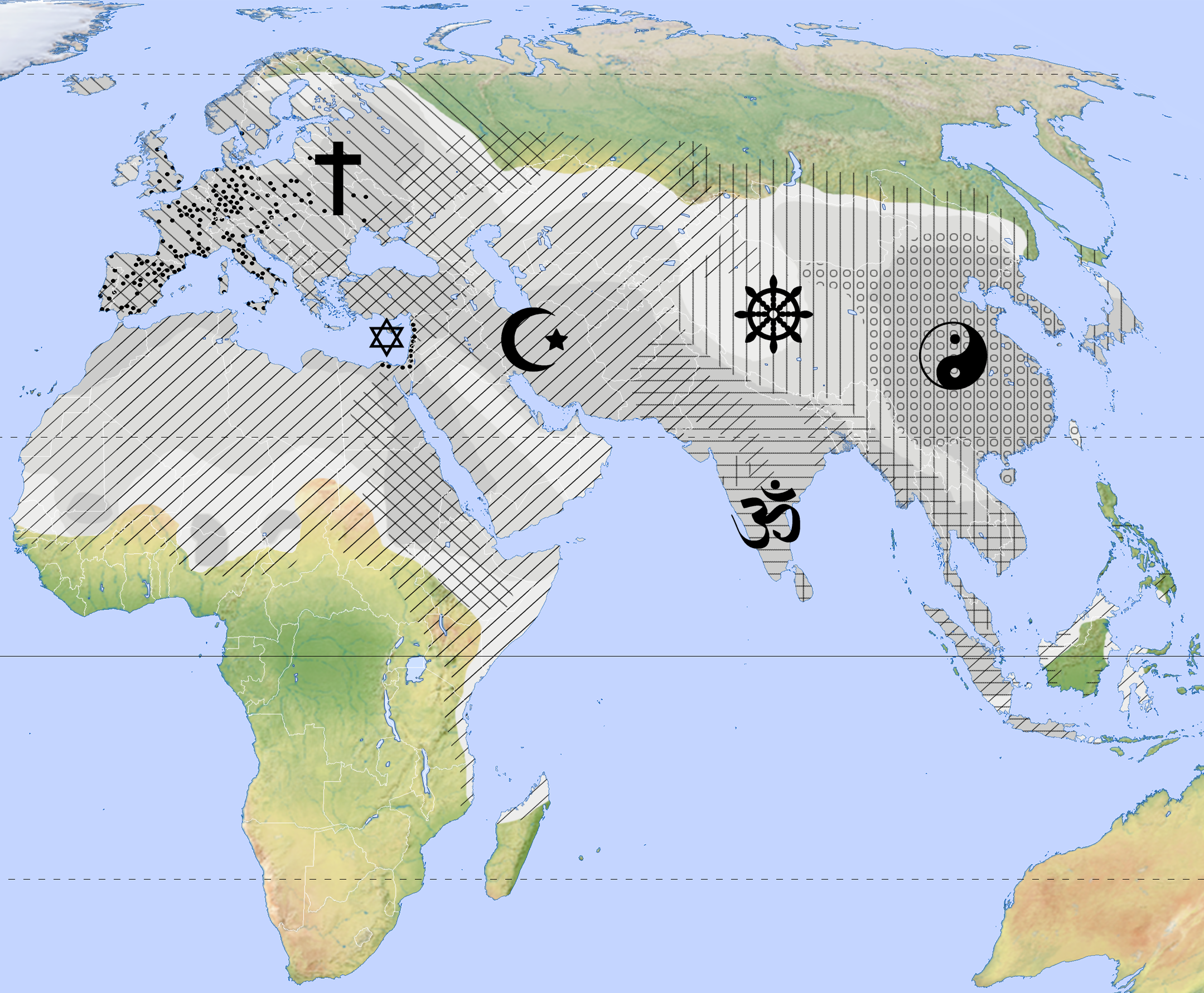 오늘날의 세계 종교는 유라시아 전역에 다음과 같이 자리 잡았다.