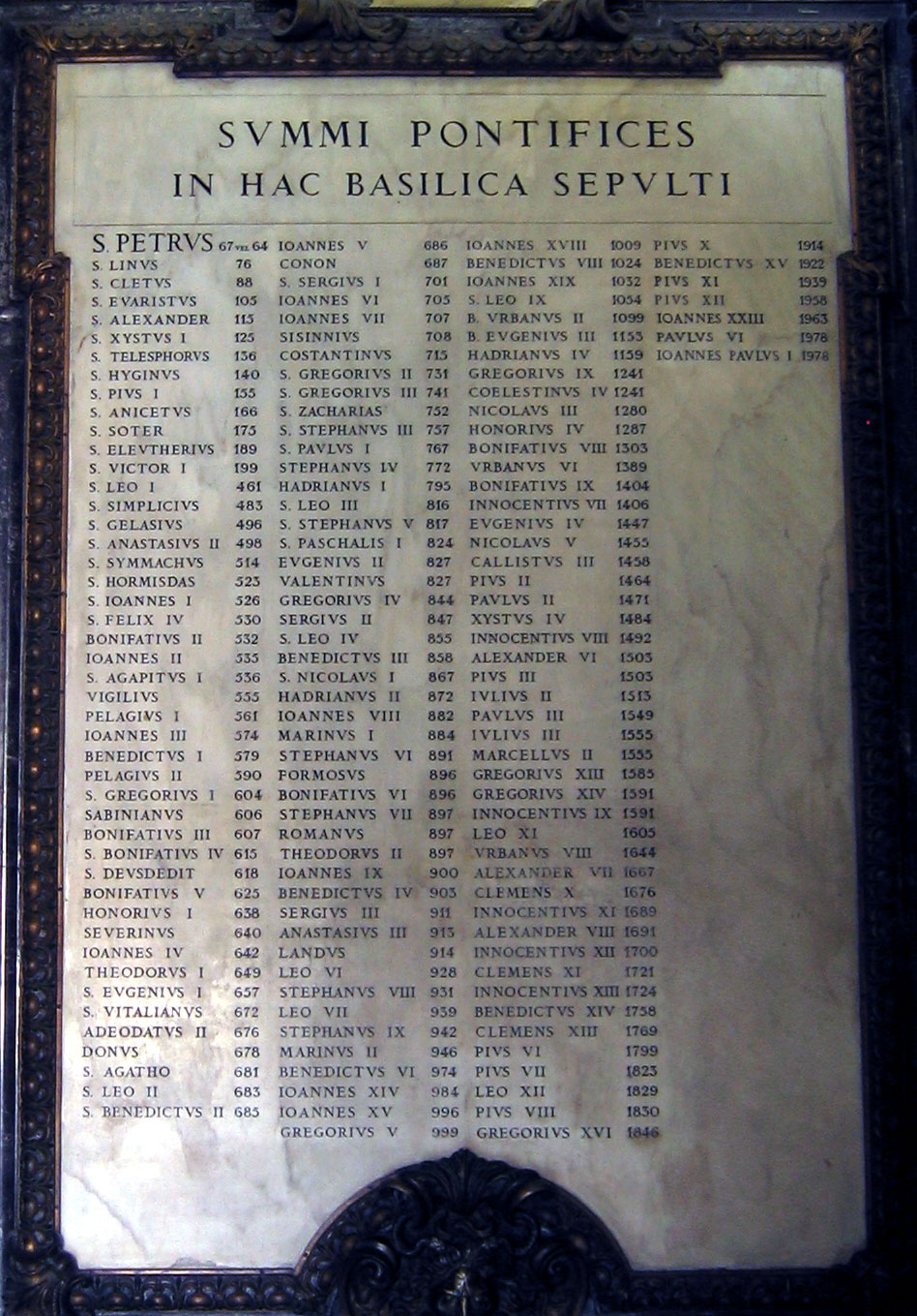 교황 요한 11세 | 931–935 | 마로치아의 아들, 교황 세르지우스 3세의 아들로 추정 |