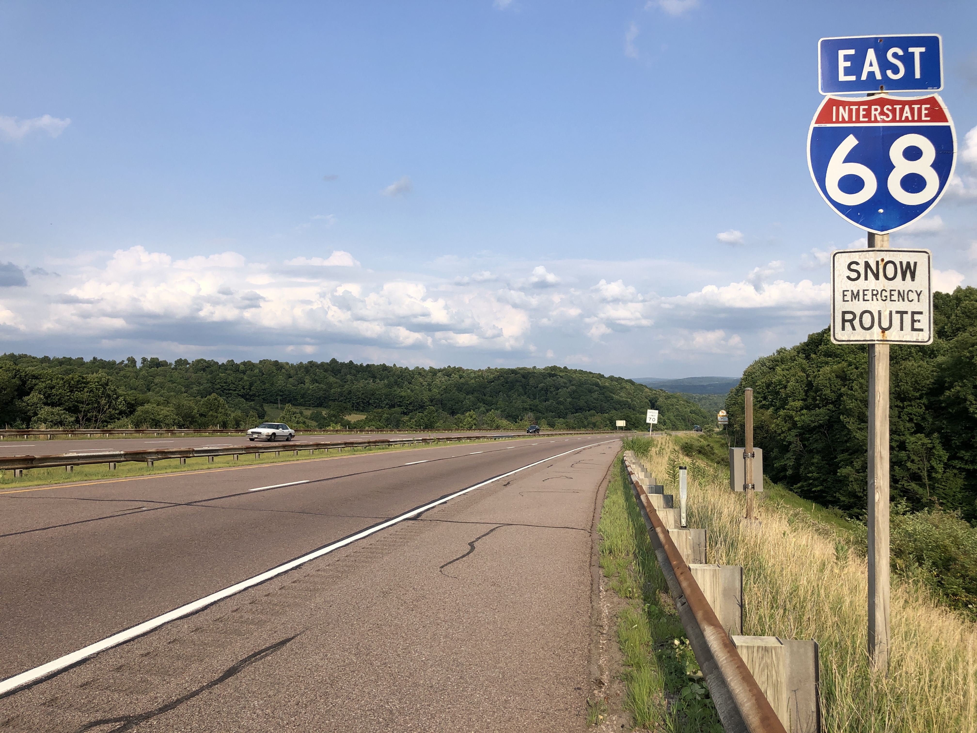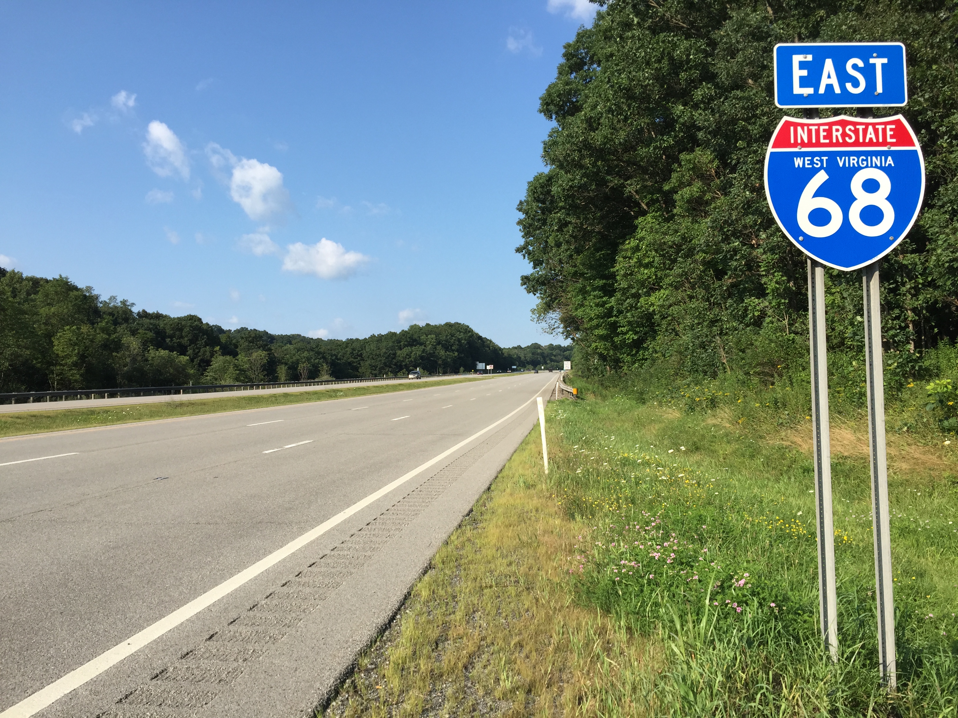 I-68이 통과하는 웨스트버지니아 지역은 전반적으로 시골이며 산악 지형이다. 특히 치트 강 협곡 근처에는 여러 구간에 걸쳐 가파른 경사가 나타나며, 이 때문에 트럭 탈출 경사로가 설치되어 있다.[44]